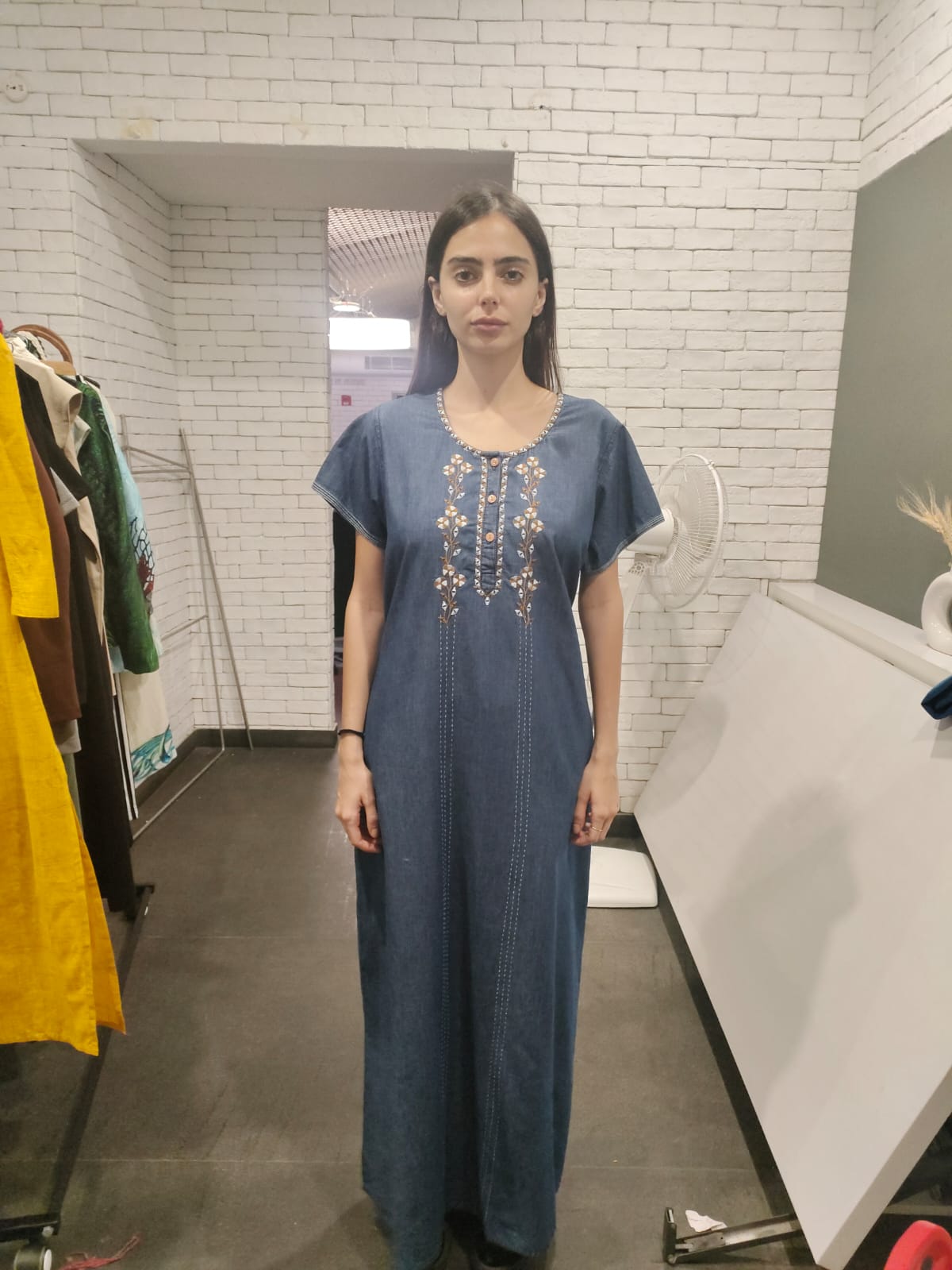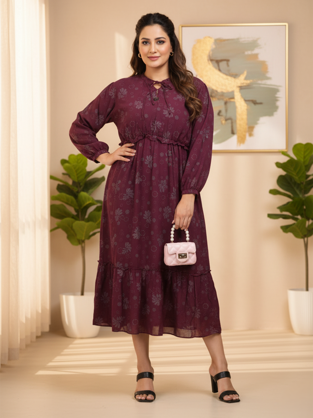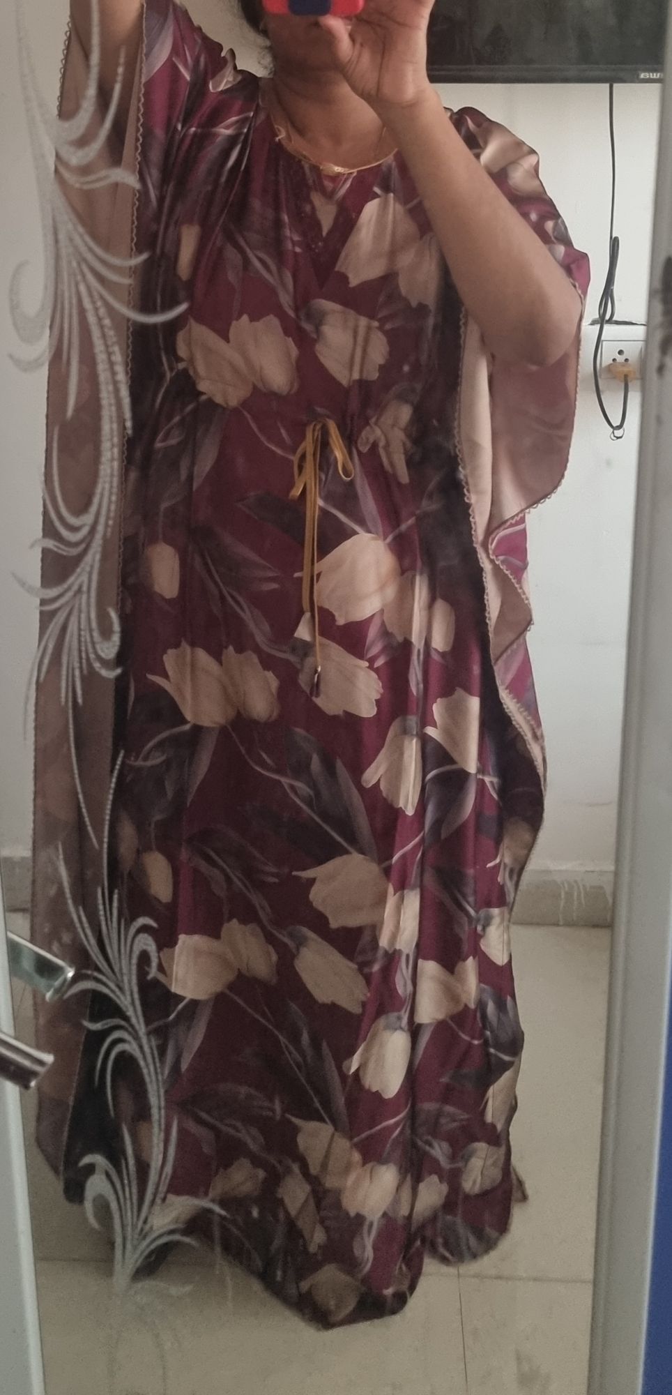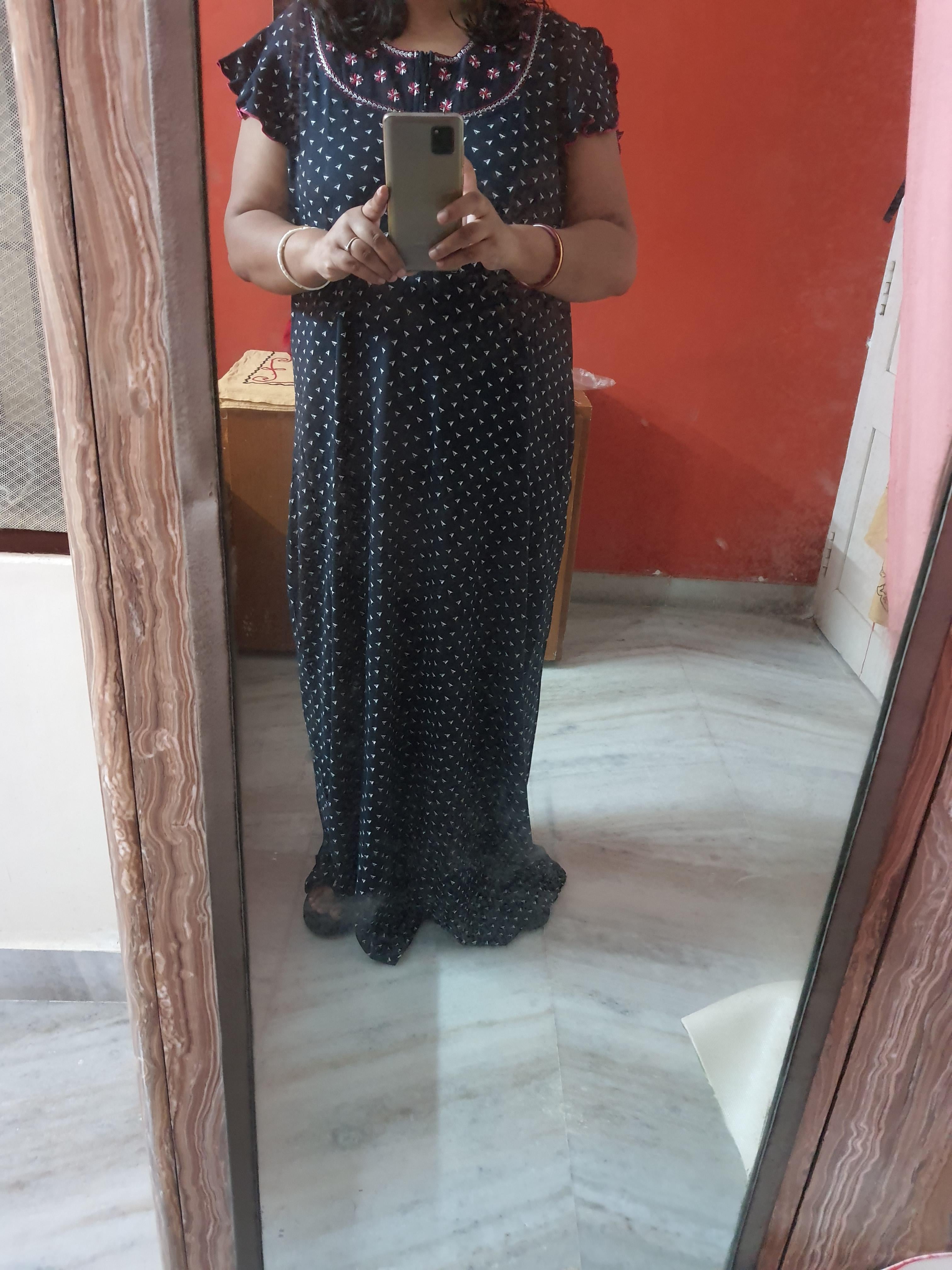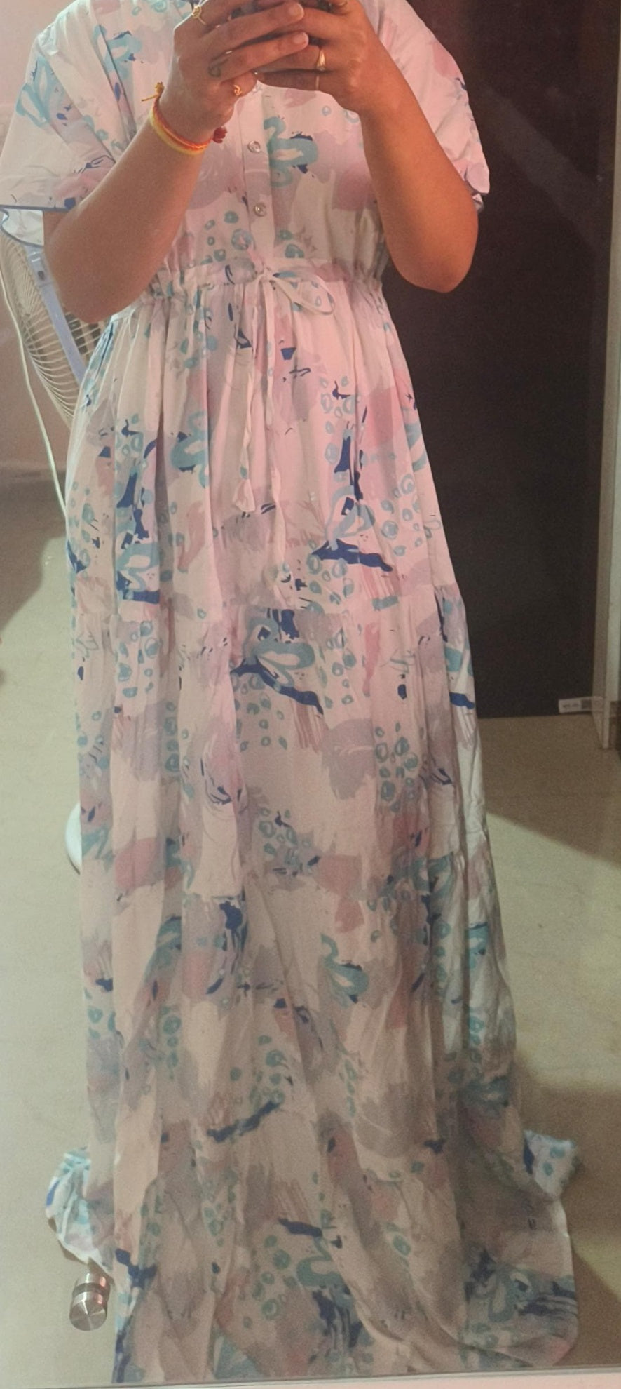 Fit: A-line maxi silhouette that flatters all body types with smooth flow.