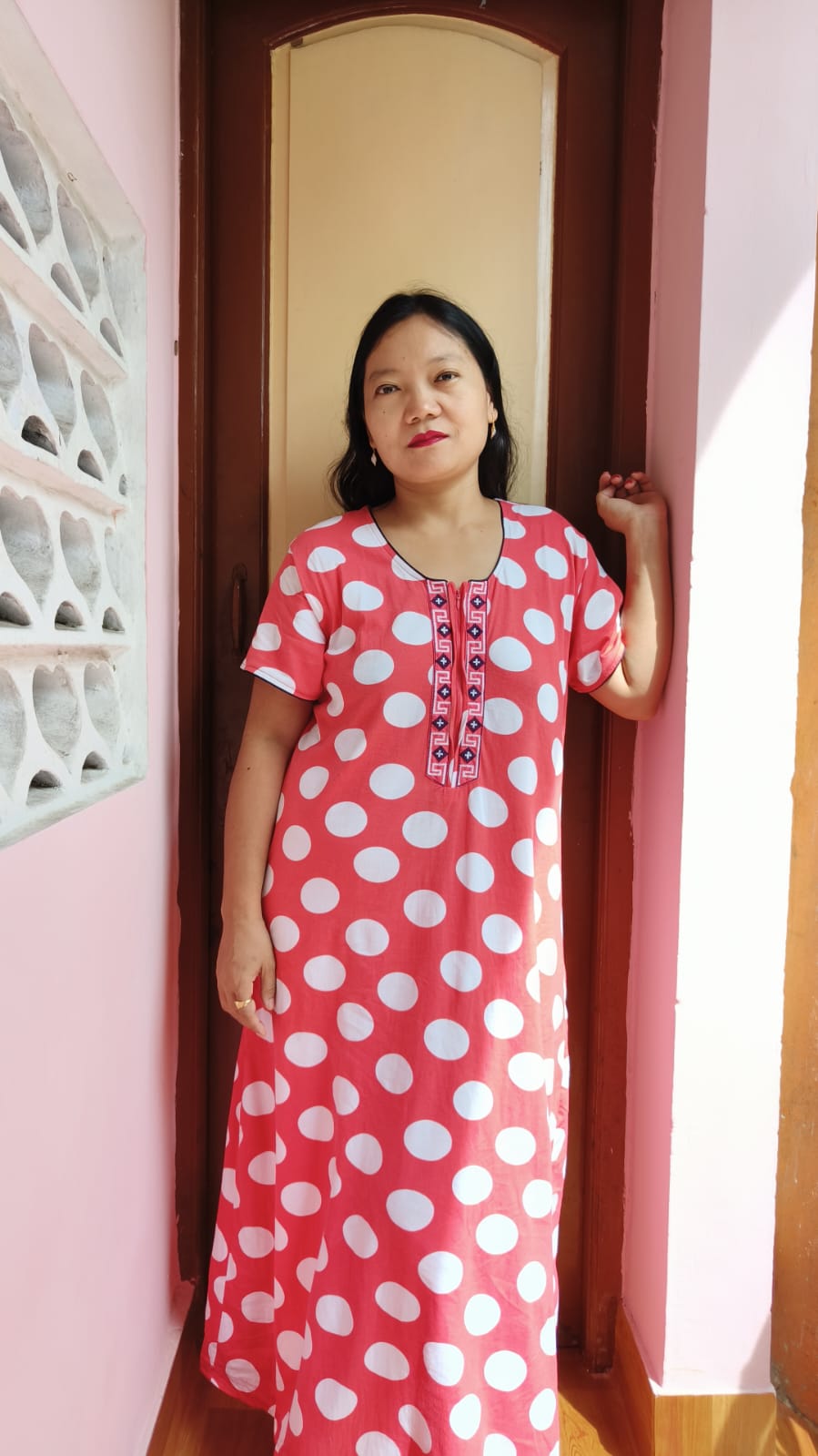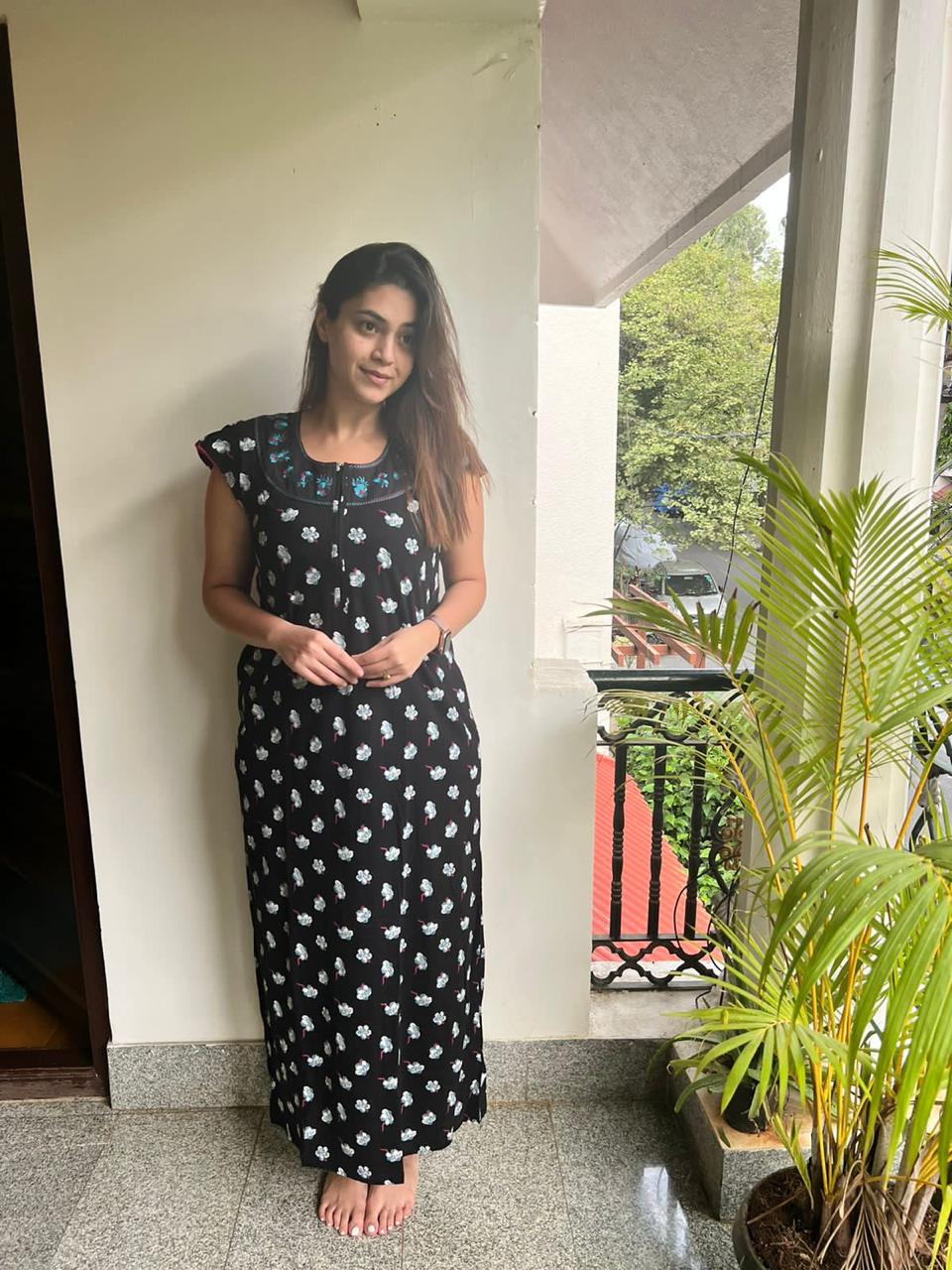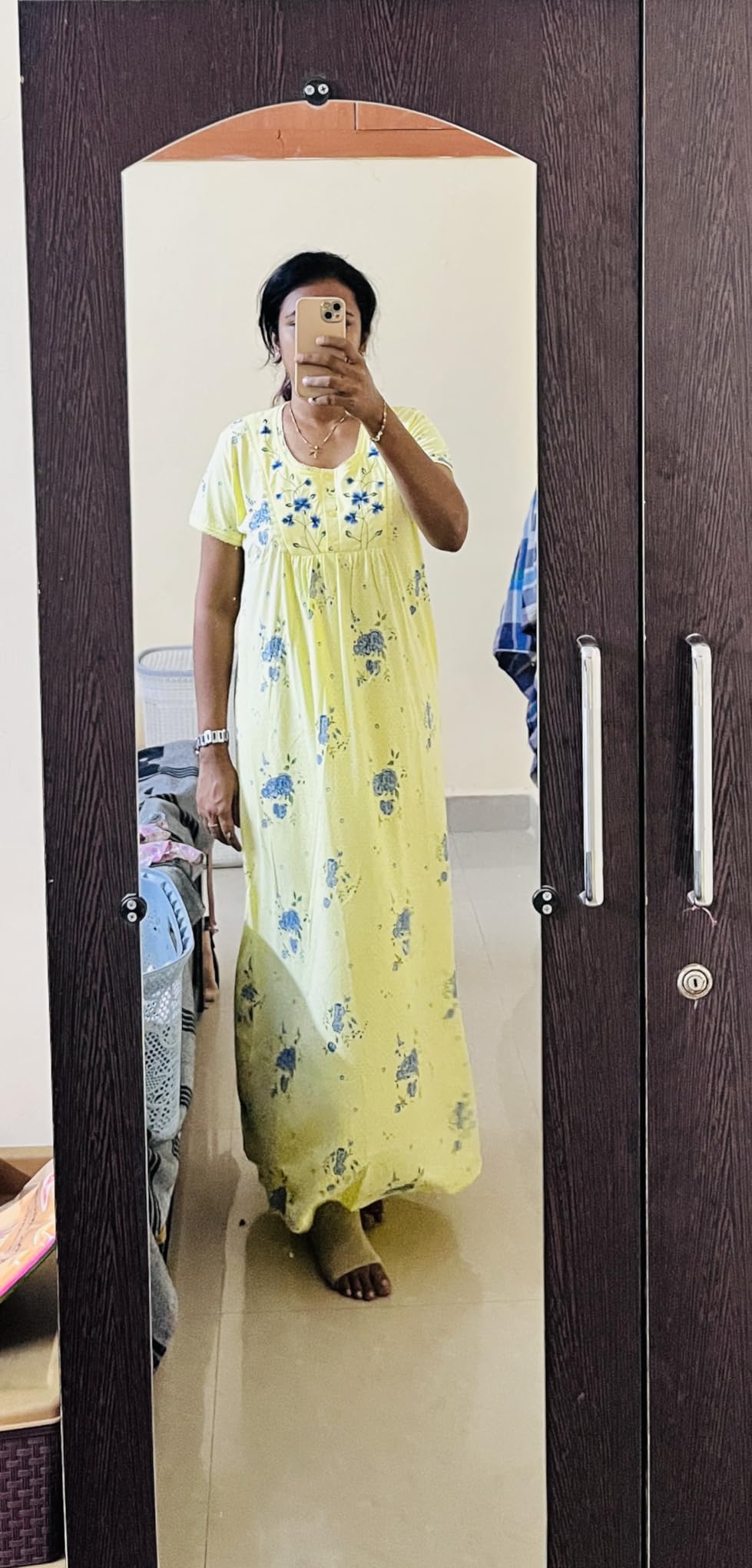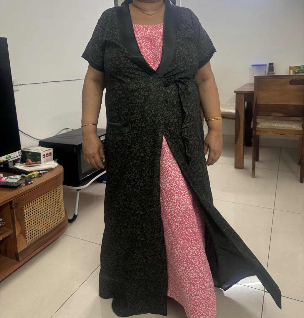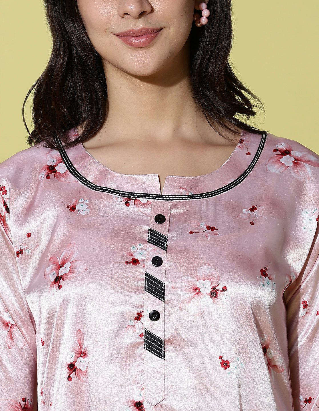 Delicate, dreamy, and divine — the Powder Pink Satin Nightdress brings an aura of feminine grace to your nightly unwind. The silky satin fabric glows with a soft blush sheen, while dainty floral prints add a touch of poetic charm. Designed for those who adore light pastel elegance, it’s an instant mood-uplifter after a long day.