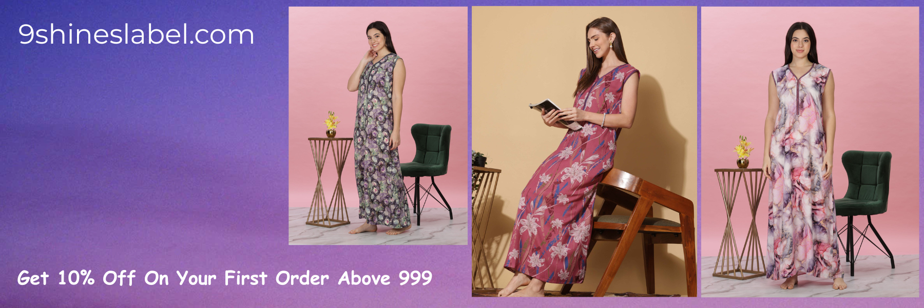 At 9shines Label, we offer a wide range of sleeveless night dresses designed for comfort, elegance, and versatility. Here's a quick look at some standout styles: