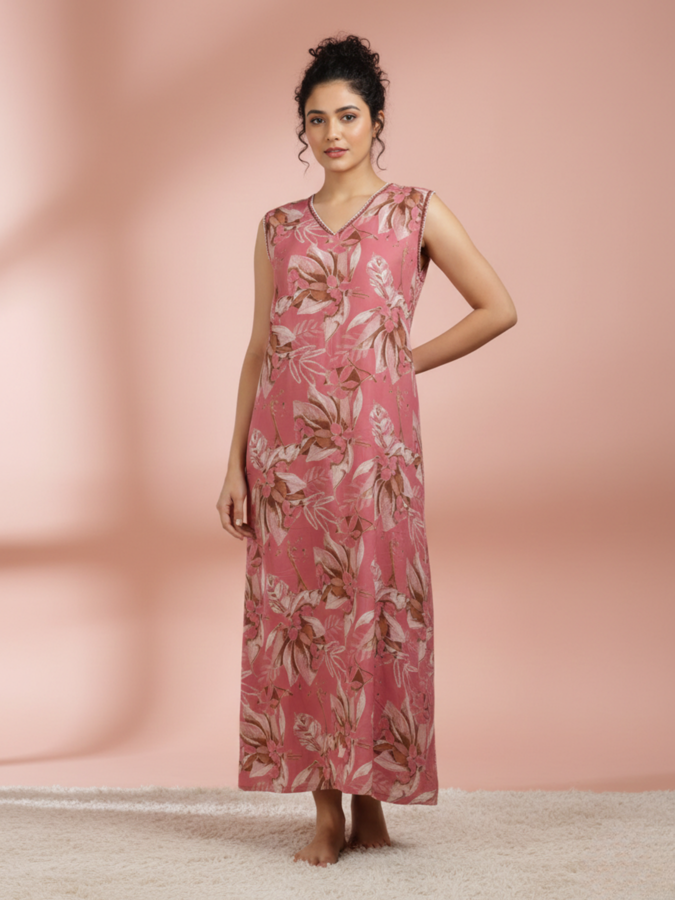 Upgrade your loungewear with the Alpine Sleeveless A-Line Nighty — a breathable, stylish, and adaptable night dress for women. Shop now and discover comfort that complements your style.