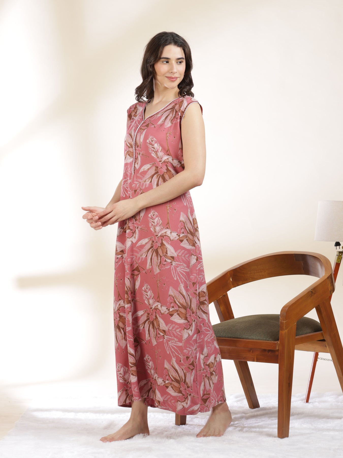 Alpine Blush Pink Sleeveless A Line Nighty for Women
