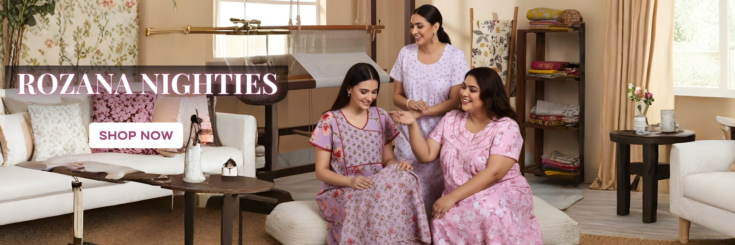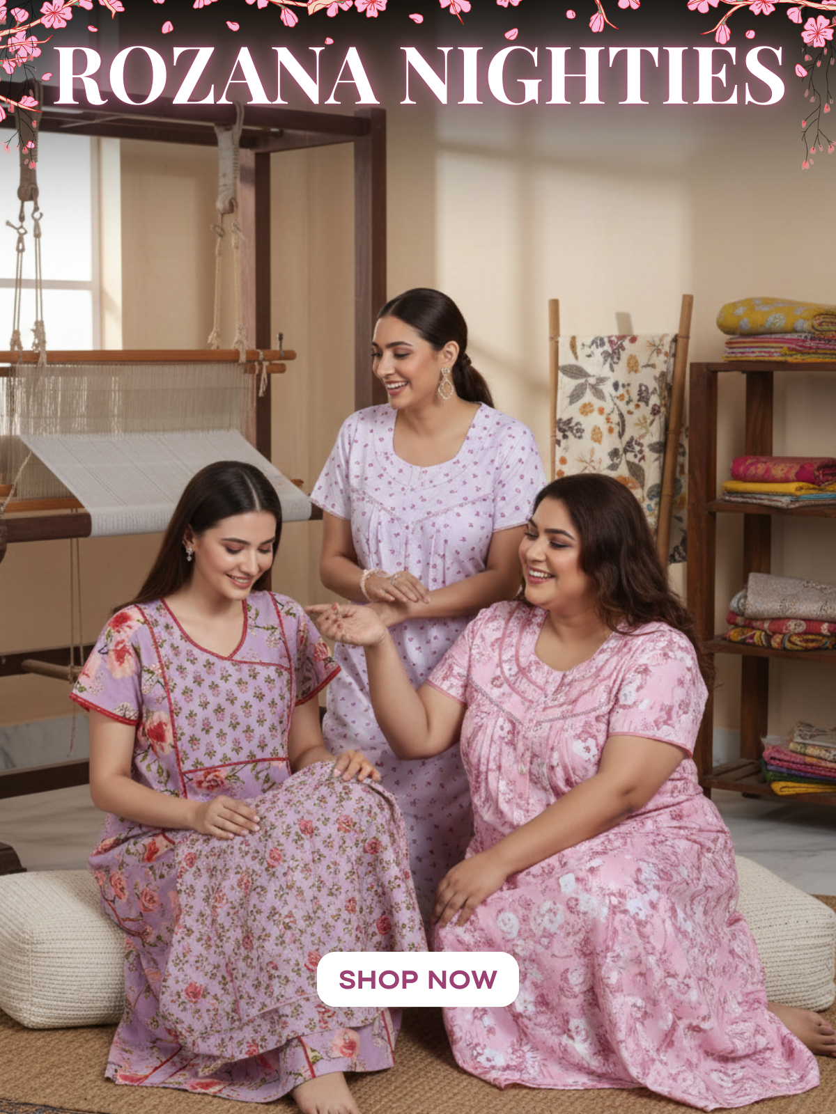 Rose Floral Cotton Blend Nighty for Women Soft Daily Wear