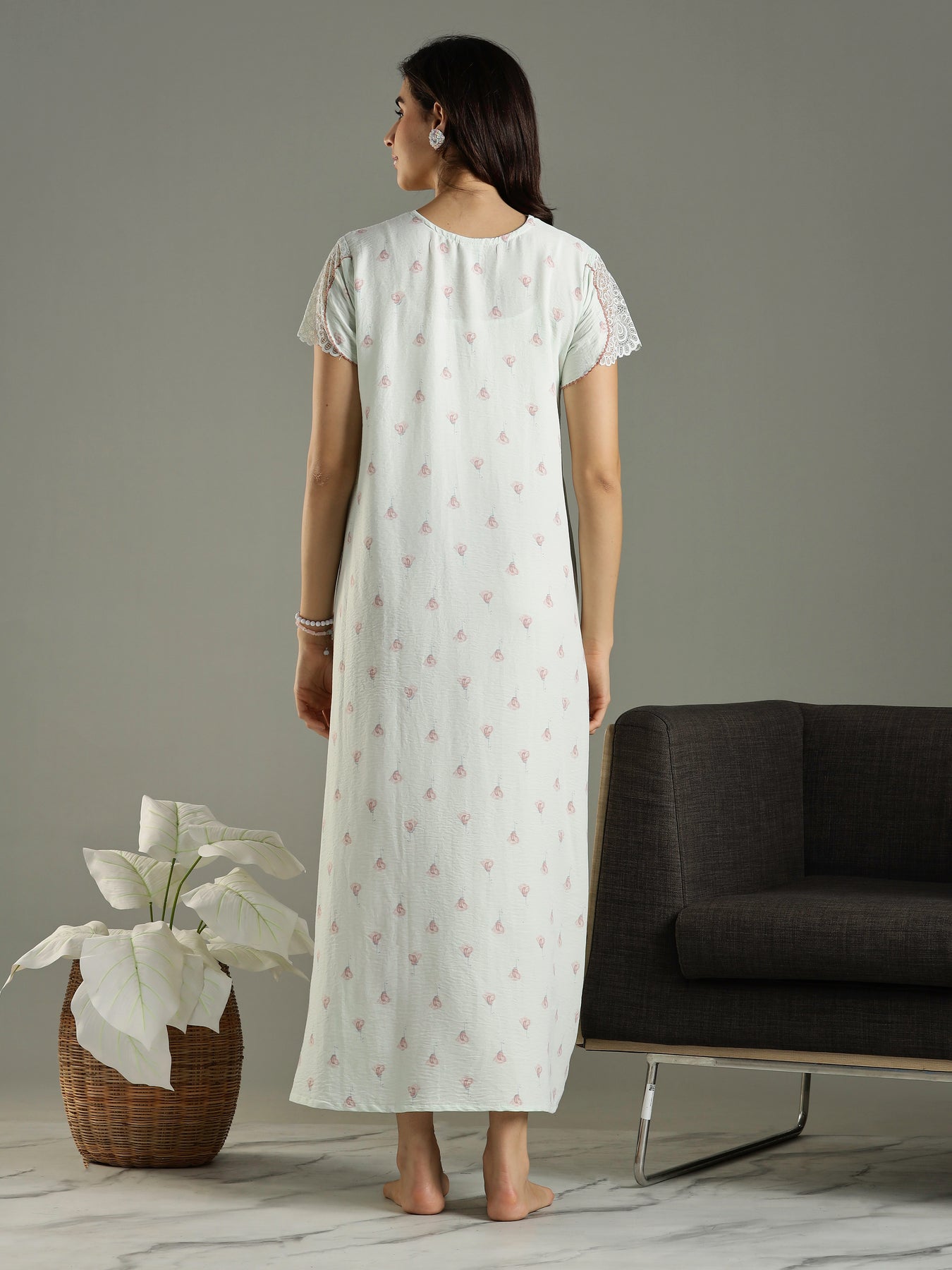 Green Bamboo Feel Cotton Lace Nighty for Women Elegant and Breezy