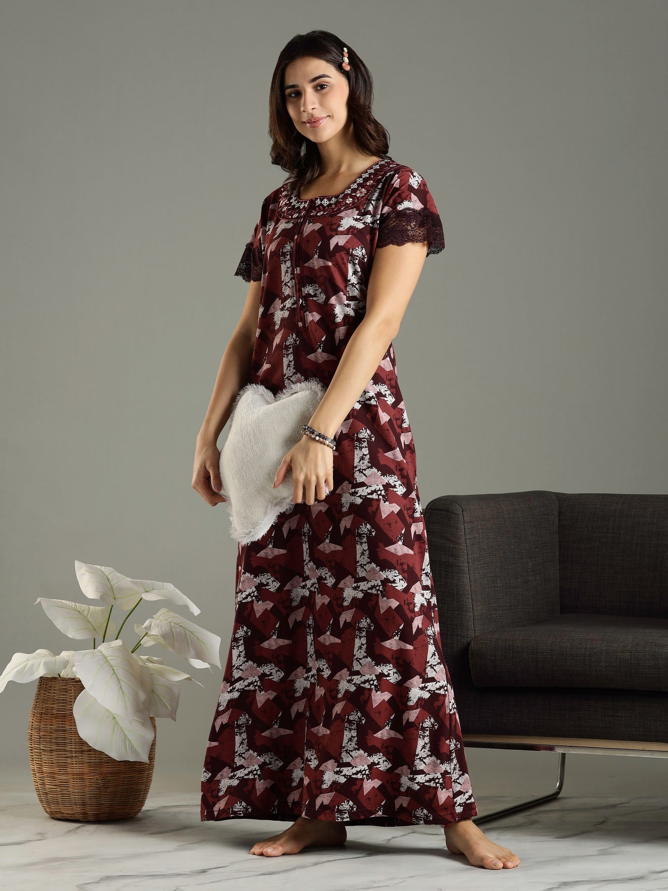 Make nights smoother and cozier. Shop this abstract red nightdress for women.
