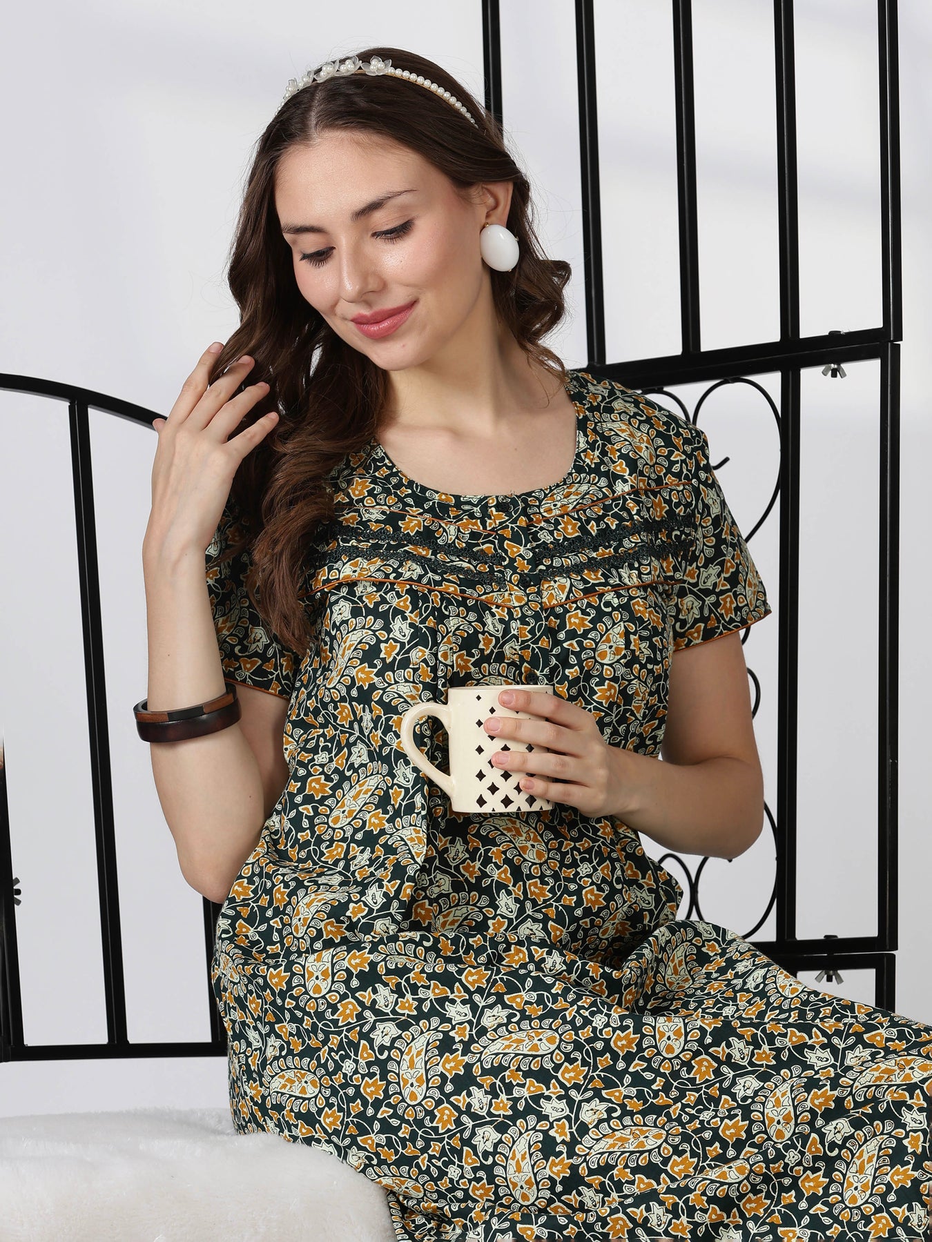 Refresh your nightwear with this paisley green cotton nighty designed for effortless comfort. The soft fabric and relaxed fit make it ideal for everyday lounging and peaceful sleep.