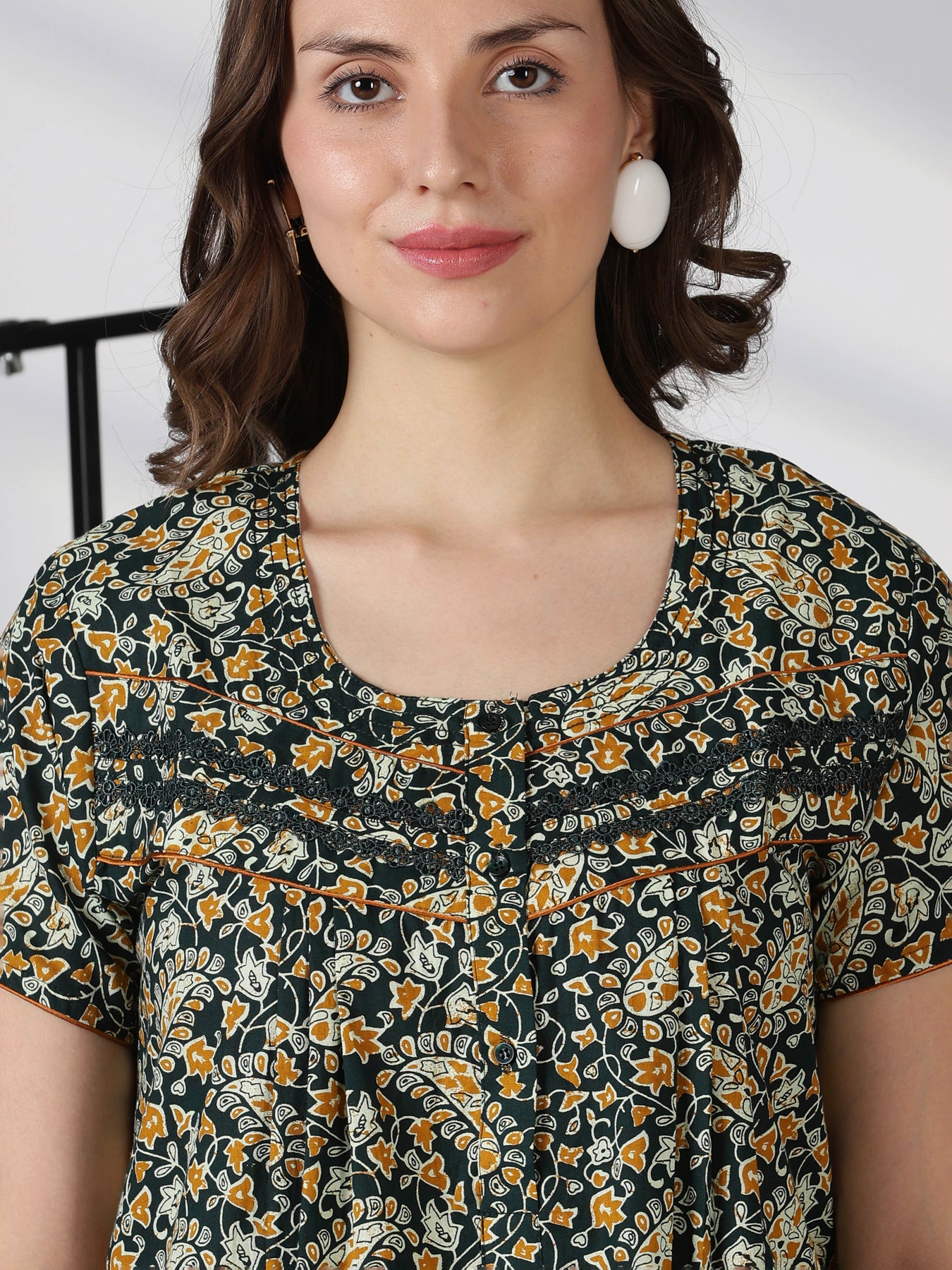 Paisley Green Cotton Nighty for Women Relaxed Fit Night Dress