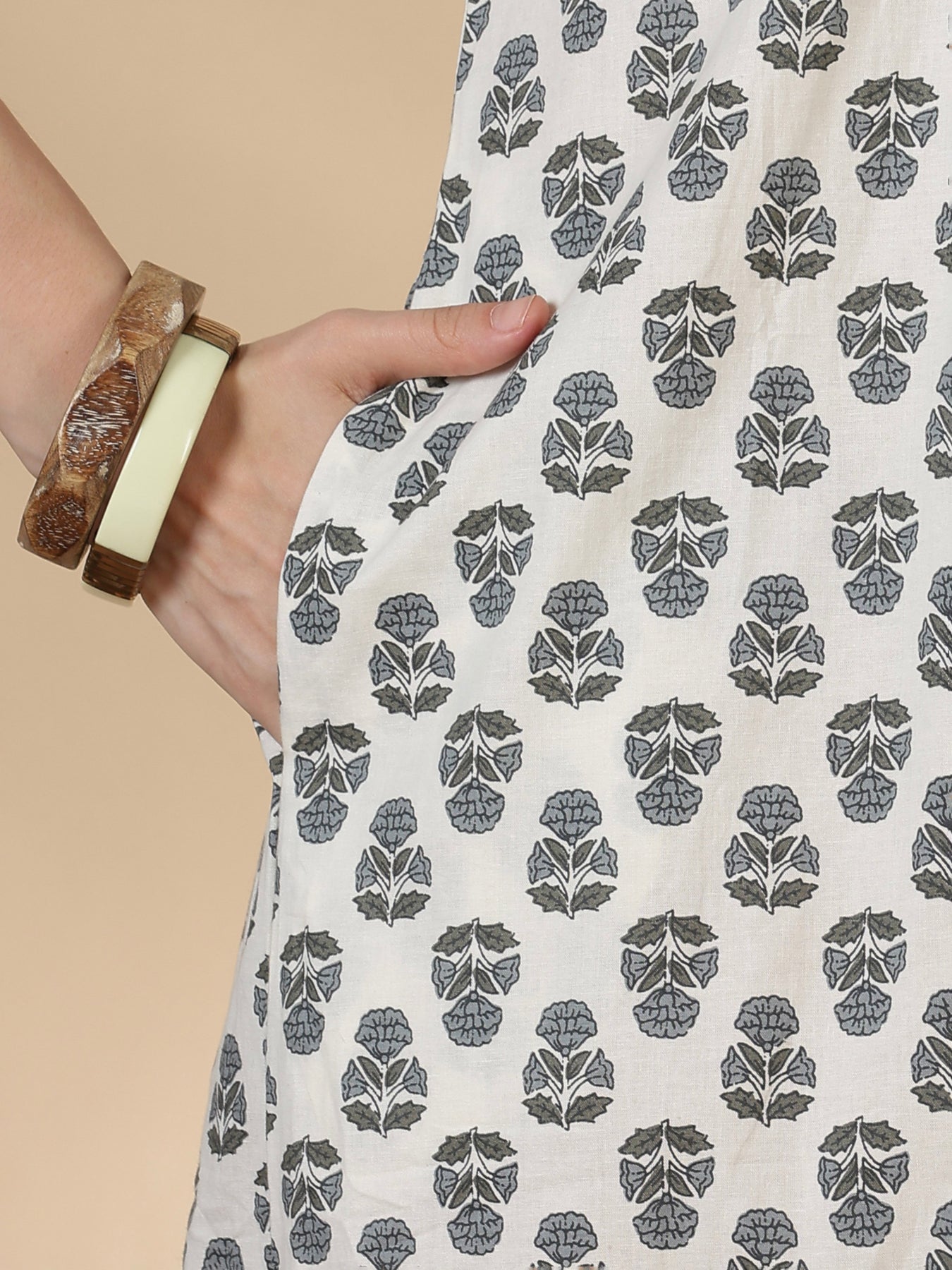 Slate Buta Cotton Nighty – Minimal Design Maximum Comfort