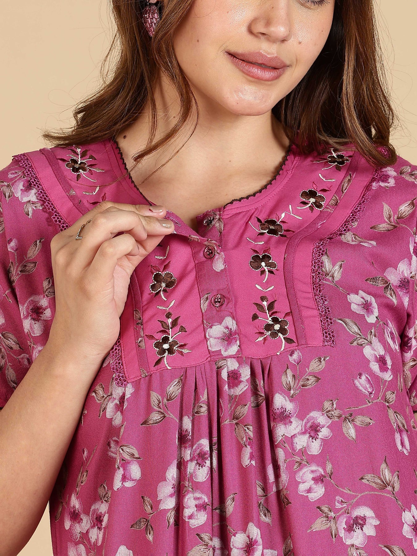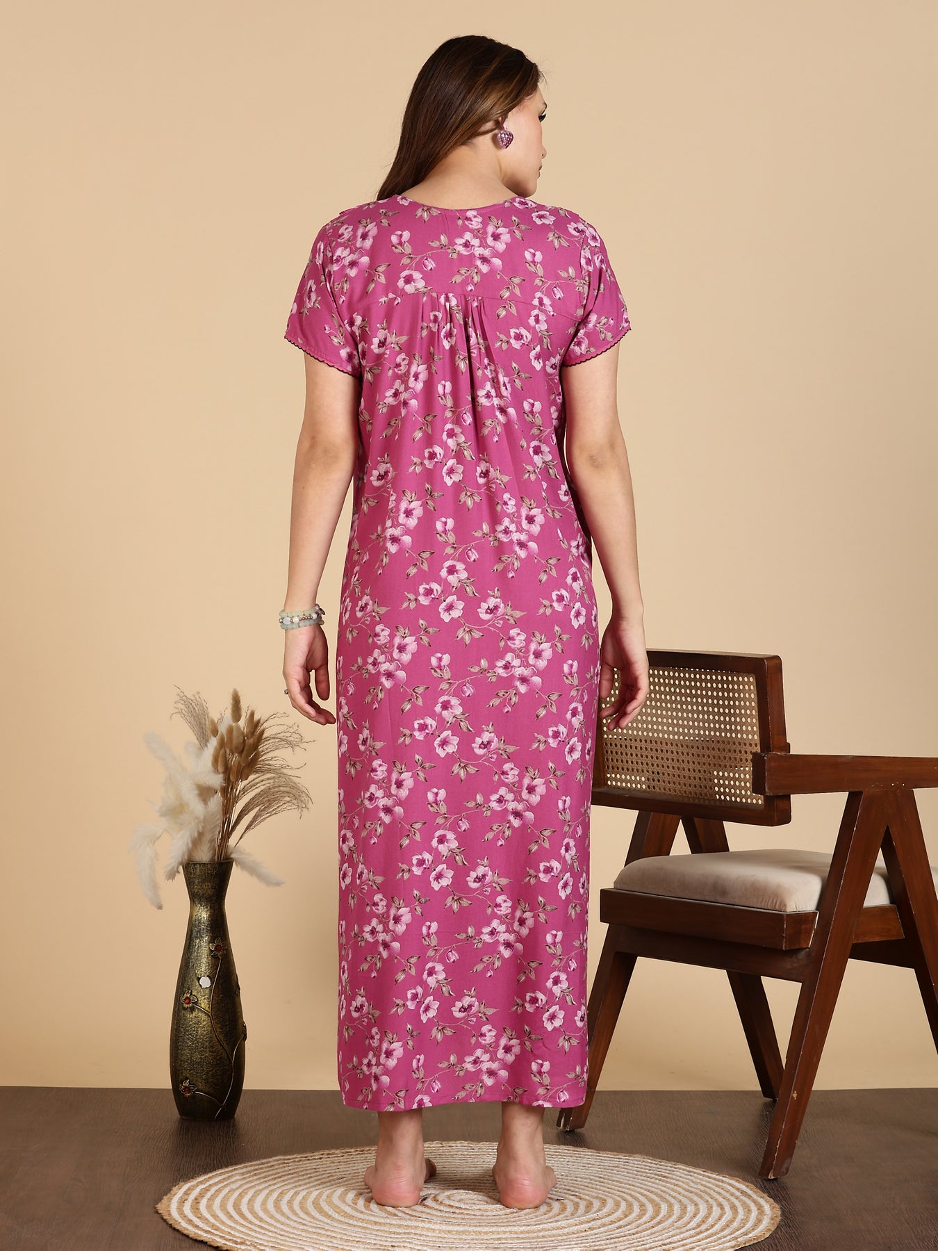 Magenta Alpine Designer Nighty for Women in Floral Print