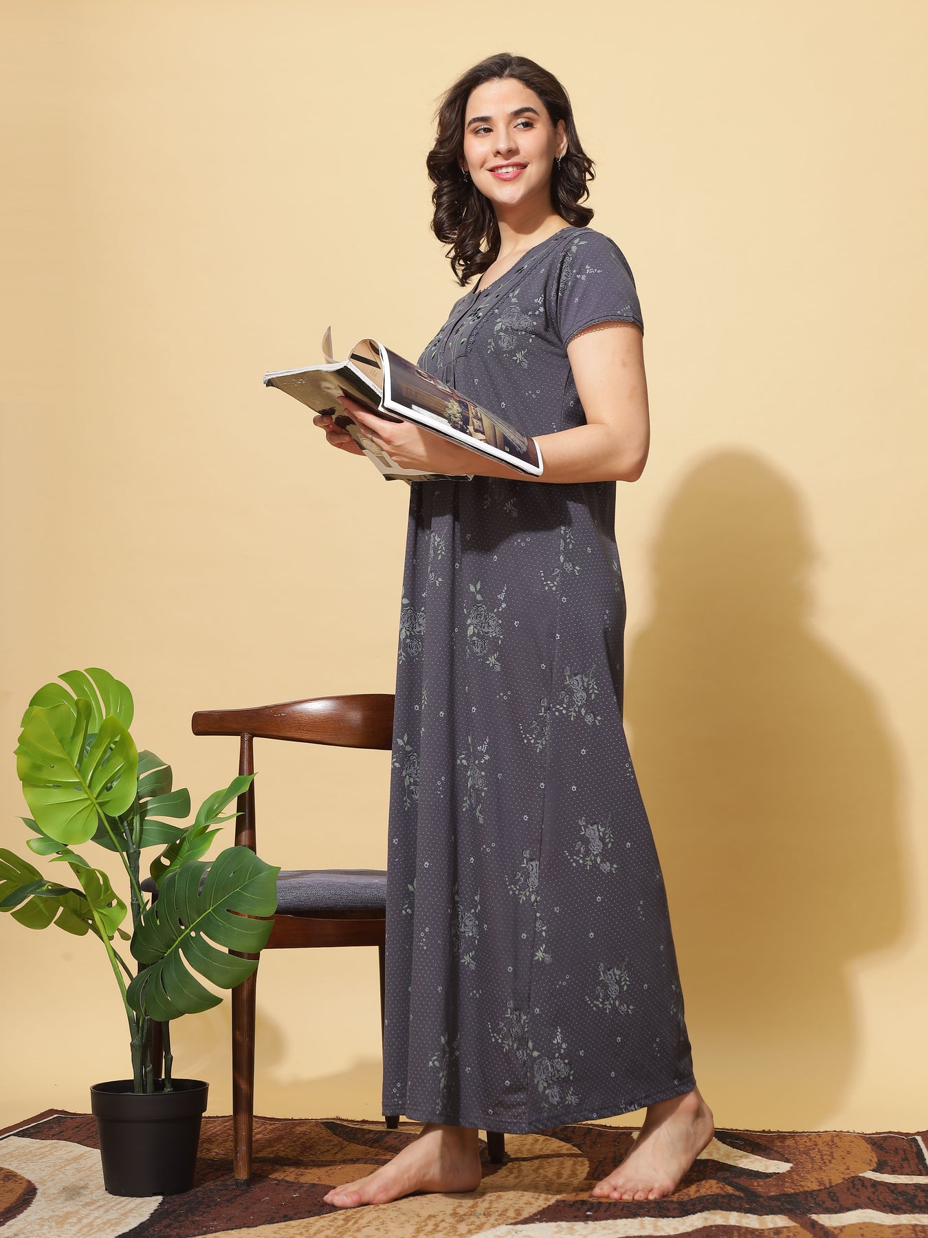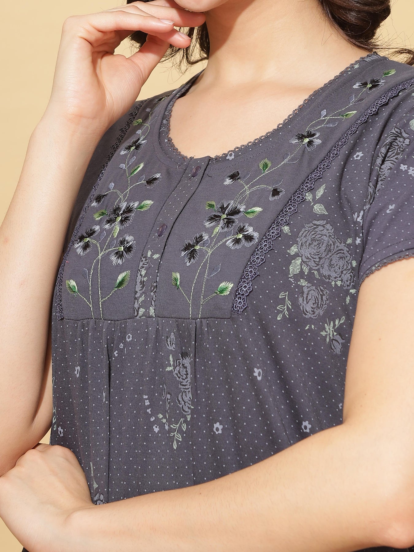 Step into timeless charm with our Pleated Cotton Blend Nighty – the perfect nightwear for women who seek style without compromising on comfort. Tailored in a breathable cotton-poly blend, this nightdress features a flattering maxi silhouette with soft gathers, floral prints, and intricate embroidery. Whether you’re lounging at home or winding down for the night, this piece adds grace to every moment.