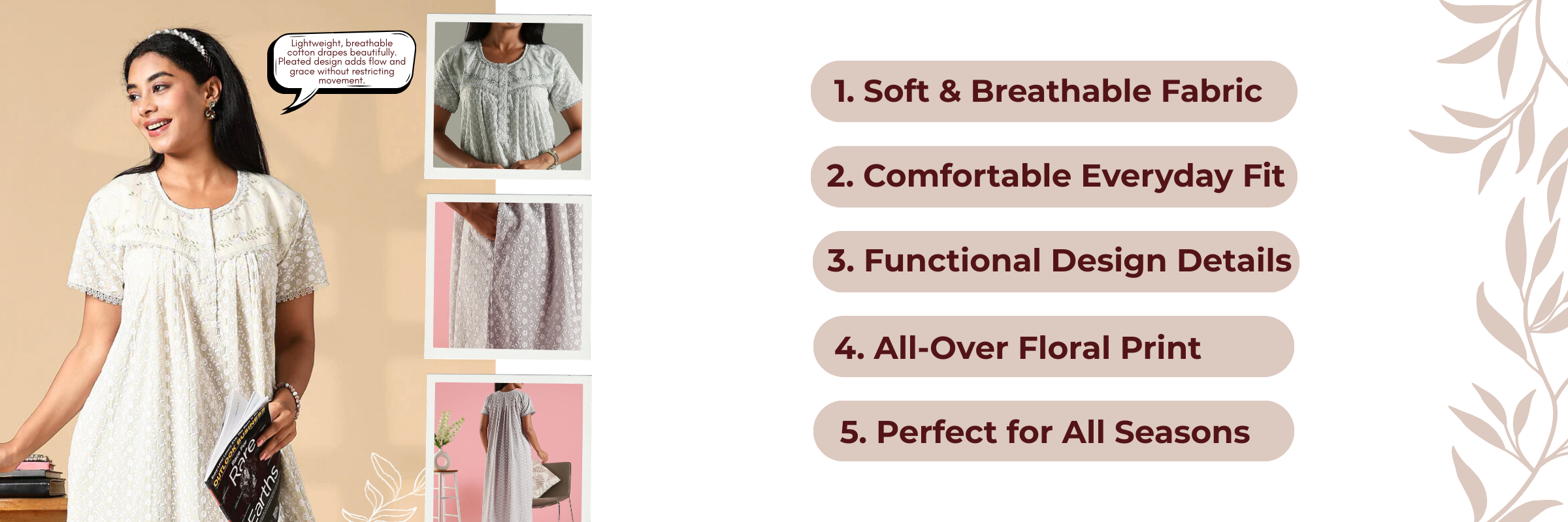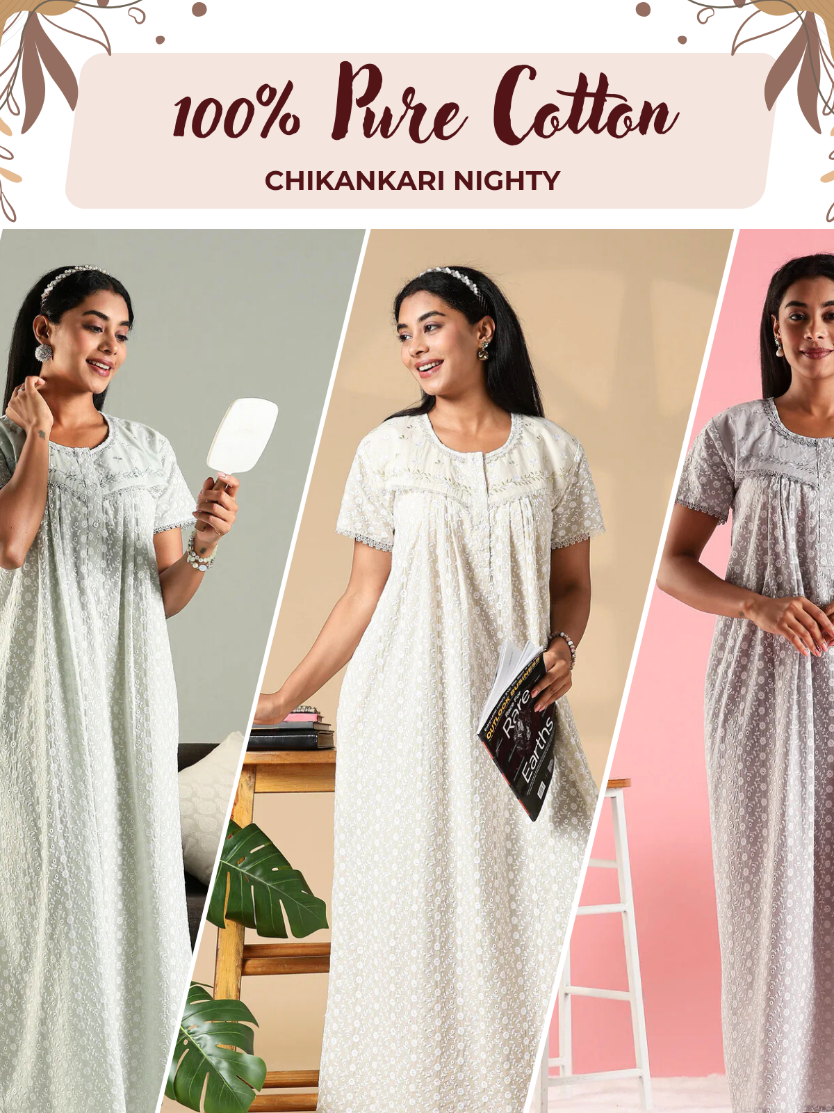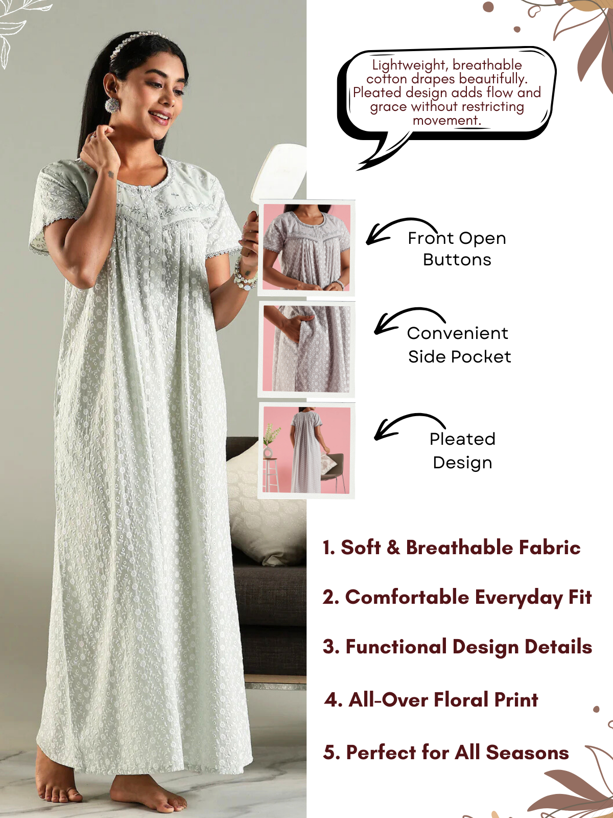 Pure Cotton Chikankari Pleated Designer Nighty – Everyday Luxury Meets Breezy Comfort