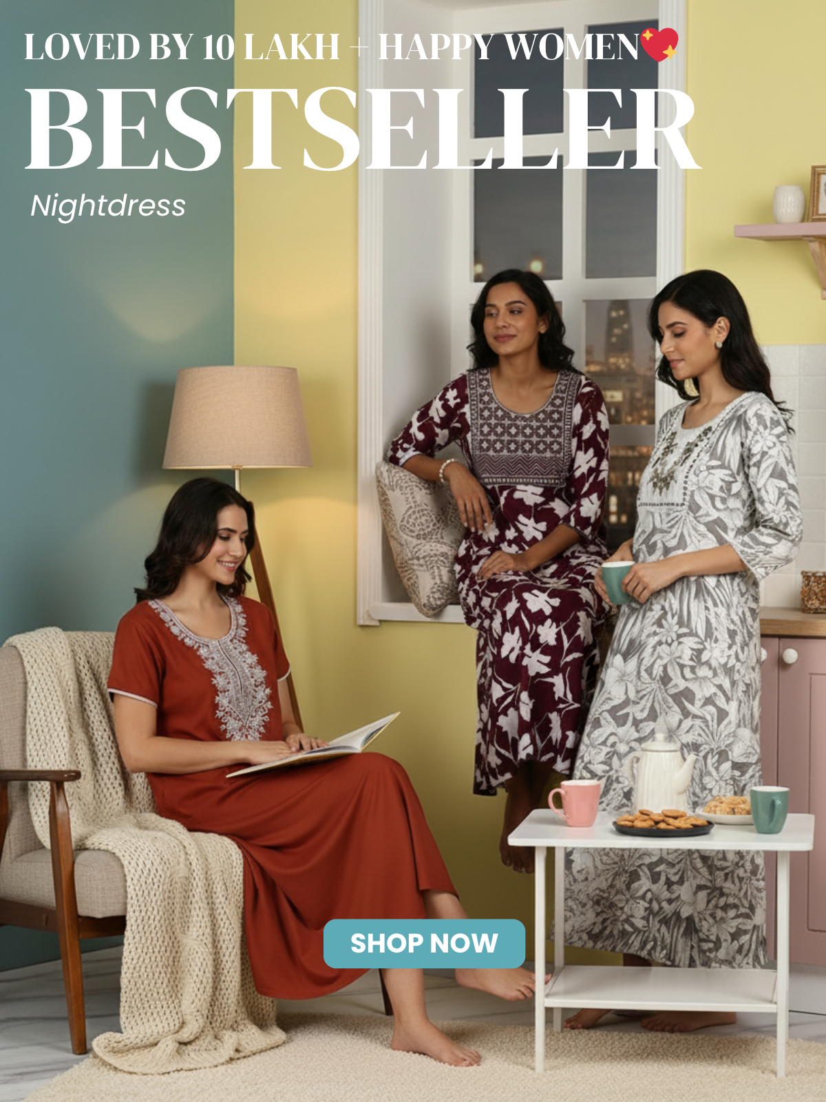 Our Best Seller Collection is loved for a reason. These nightwear pieces are not only chosen for their high sales but also for their rave reviews from real customers. From the comfort of pure cotton nighties to the elegance of satin nighties, each piece brings its own unique charm. These nighties and nighty dresses are designed to make you feel comfortable, stylish, and confident while you relax or sleep.
