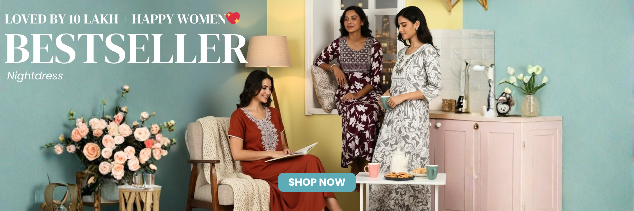 Looking for the perfect nighty for women? Our Best Seller collection offers a curated selection of customer favorites, designed for both style and comfort. Whether you're after a cozy nighty dress, a chic long nighty for ladies, or a versatile kaftan, each piece ensures a restful and fashionable night’s sleep. Shop now to discover why these nightwear pieces are loved by women everywhere.