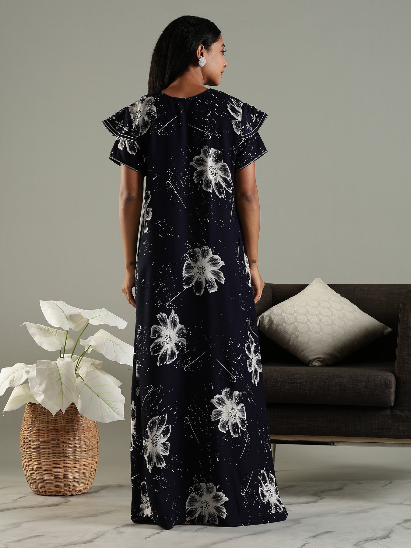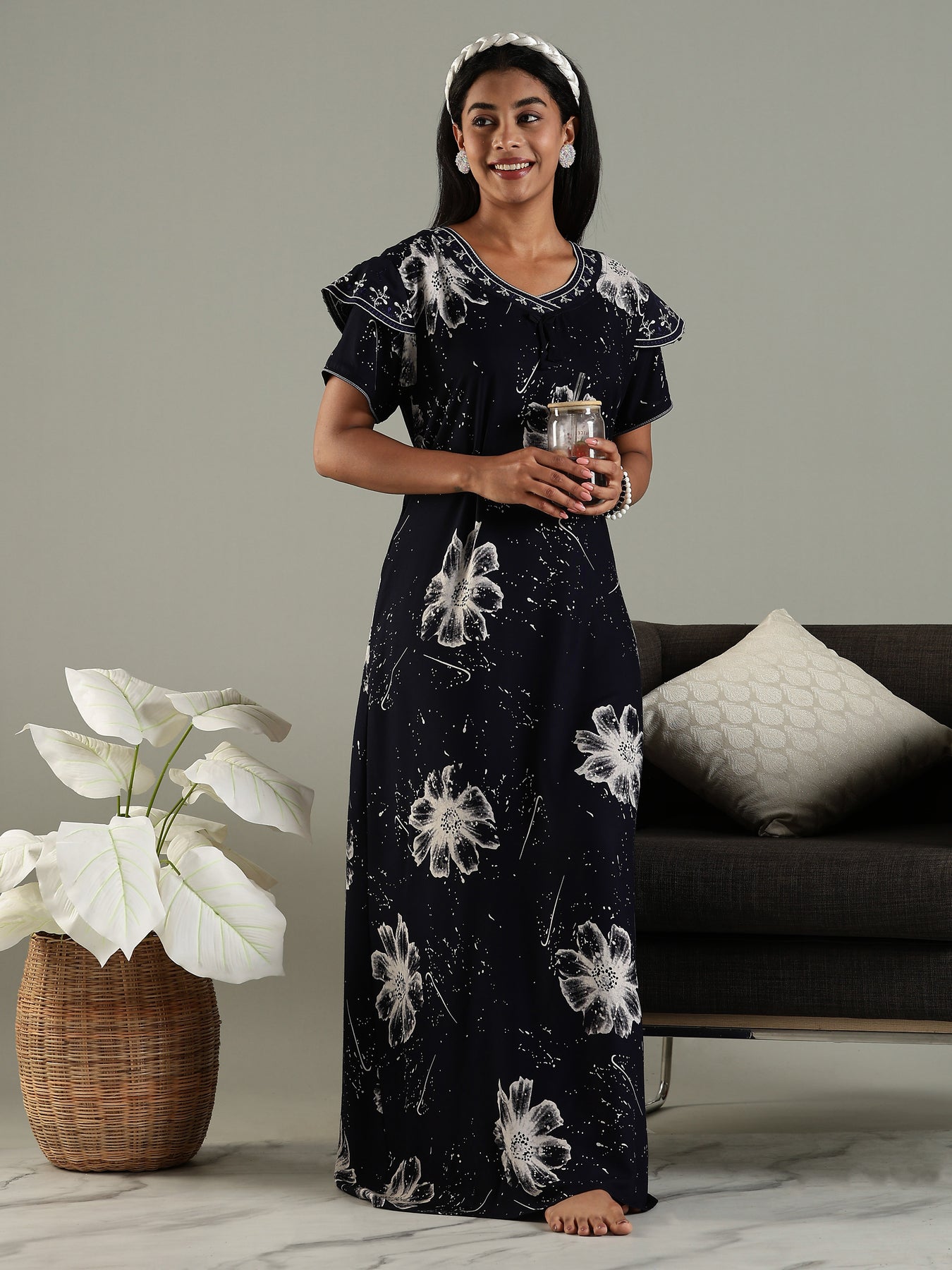 Floral Dreams Rayon Designer Nighty – For Breathable Elegance and Everyday Luxury