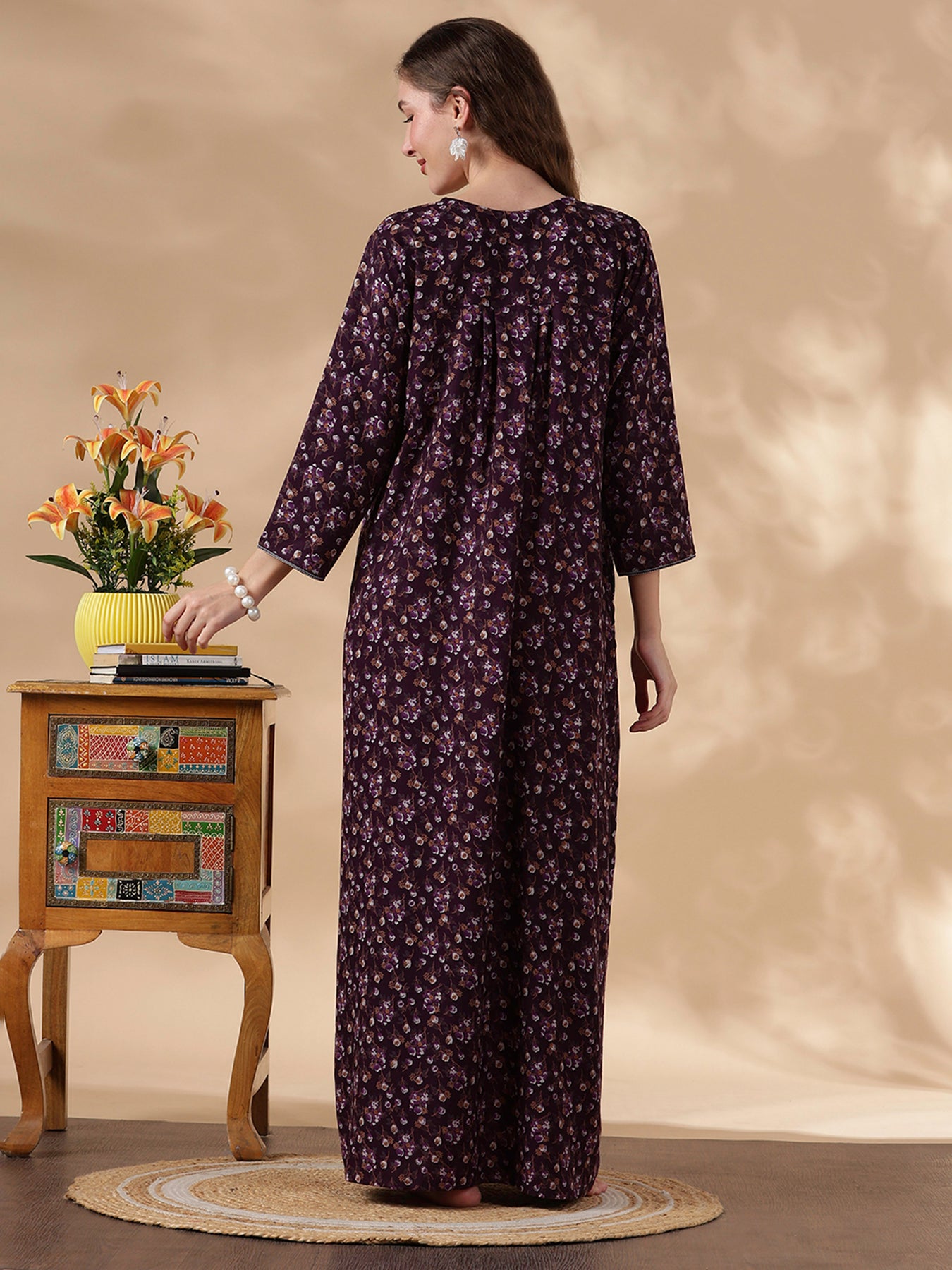 Alpine Floral Full Sleeves Nighty Purple Flower Comfortable Fit