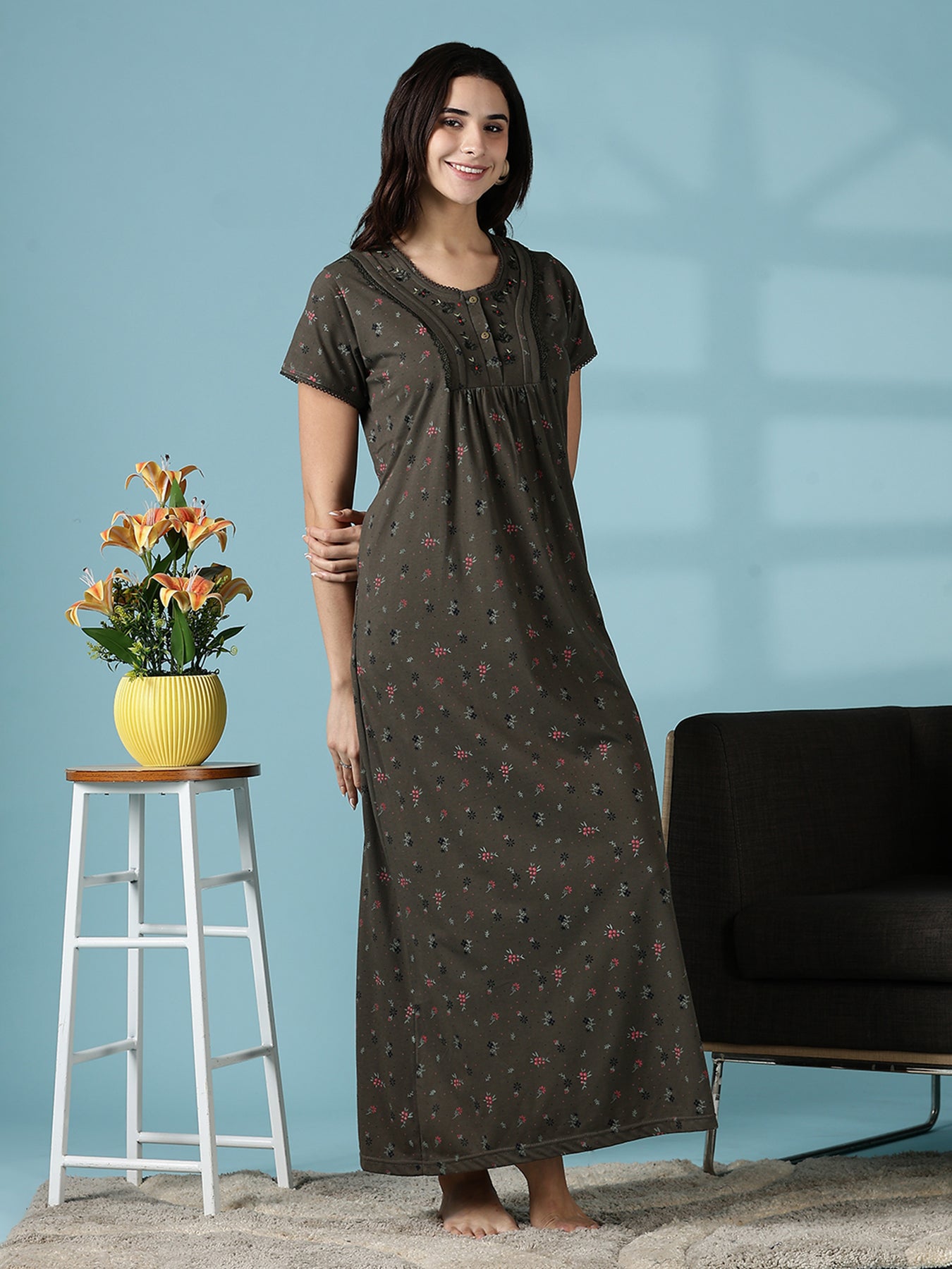 The Dusty Olive Green variant offers sophistication for women who love subtlety. With its muted hue, intricate embroidery, and practical design, it delivers an elegant mix of comfort and charm that lasts through seasons.