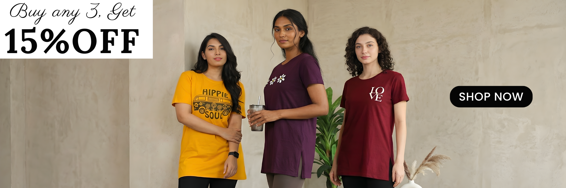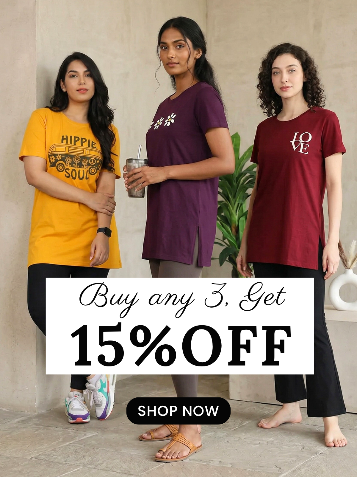 Finding the perfect fit comes down to your lifestyle. Need something breezy for yoga or pilates? Try our yoga t shirts for women, designed with stretchable fabric and a relaxed silhouette that stays in place through every pose. "Studies show that 76% of women prefer longer tops during workouts to avoid constant adjusting." Looking for something casual for daily errands or walks? A cotton long t-shirt paired with leggings makes for a comfortable and stylish go-to. Prefer something to relax or sleep in? Our oversized styles also double as t-shirt nightdresses, combining softness and simplicity for all-day wear. "Cotton sleepwear helps reduce night sweats by up to 35% compared to synthetic fabrics."