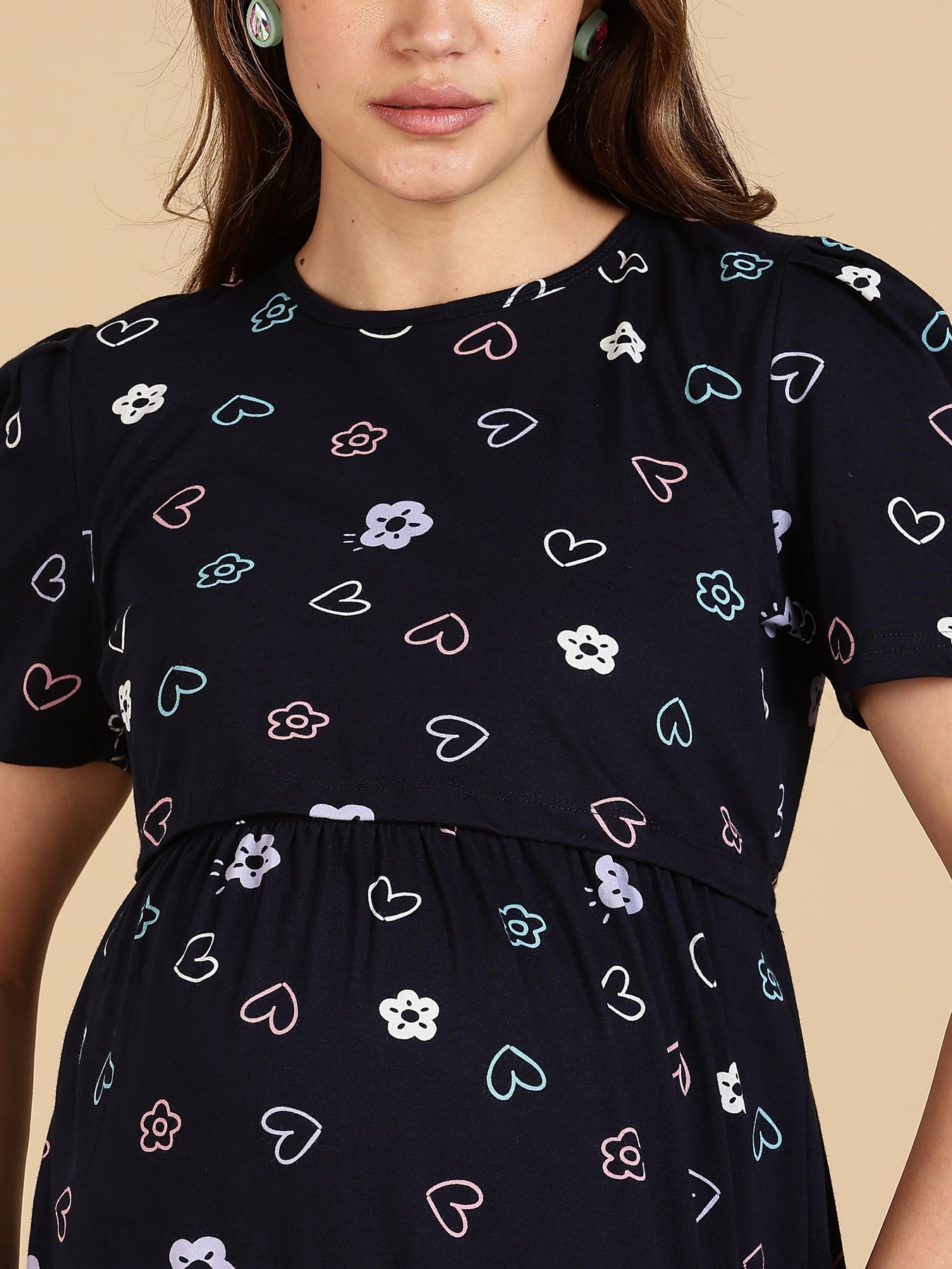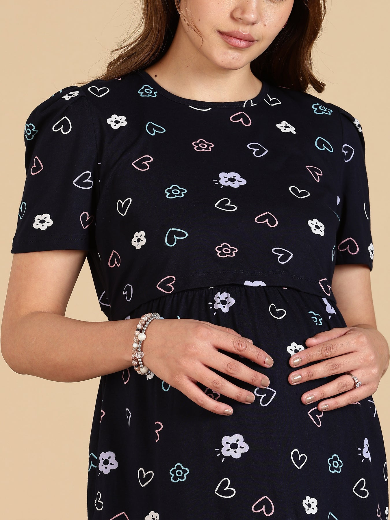 Navy Stylish Zipless Maternity Feeding Nightwear for Women