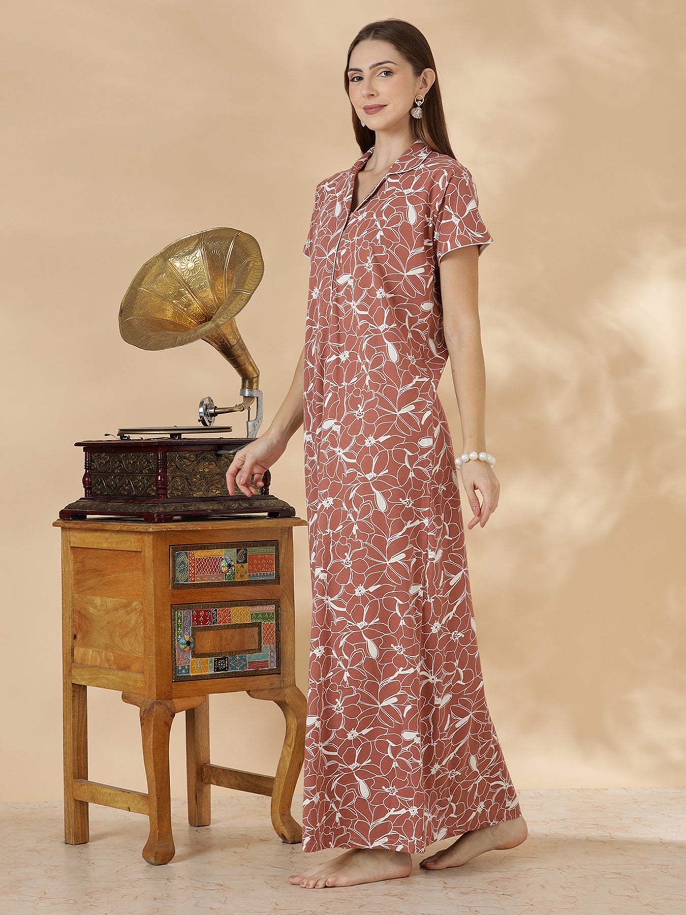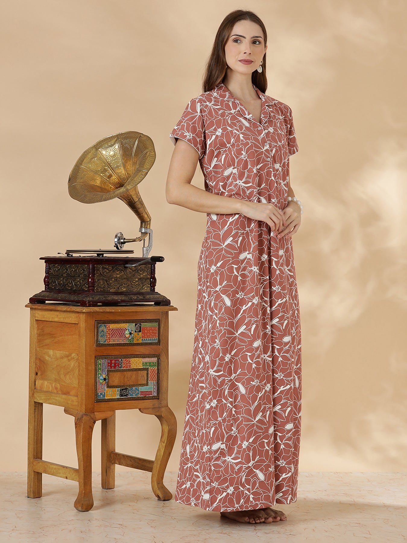 Clay Floral Hosiery Cotton Nighty for Everyday Comfort