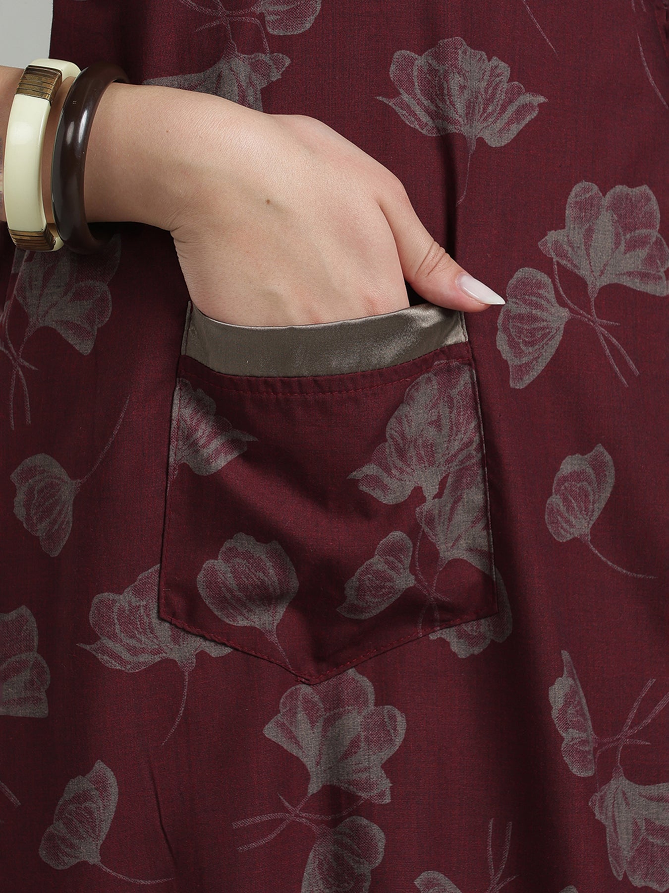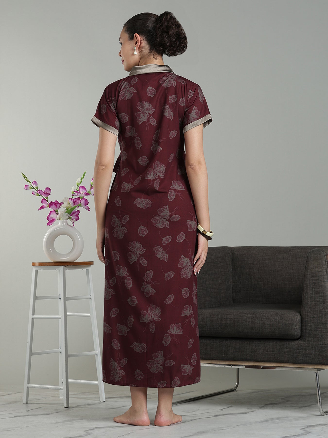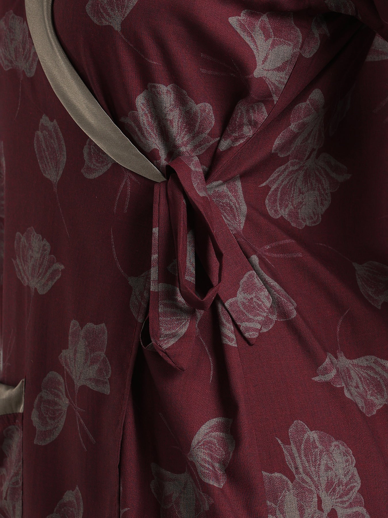 Prussian Wine Viscose Blend Housecoat with Floral Sketch Print for Women