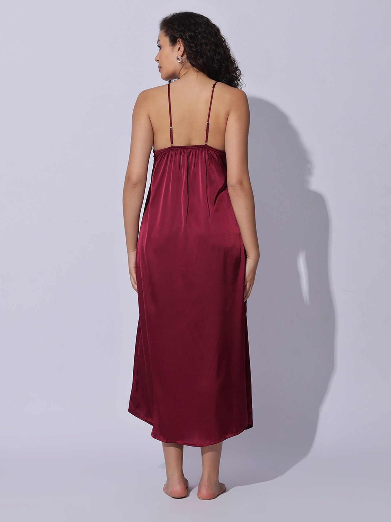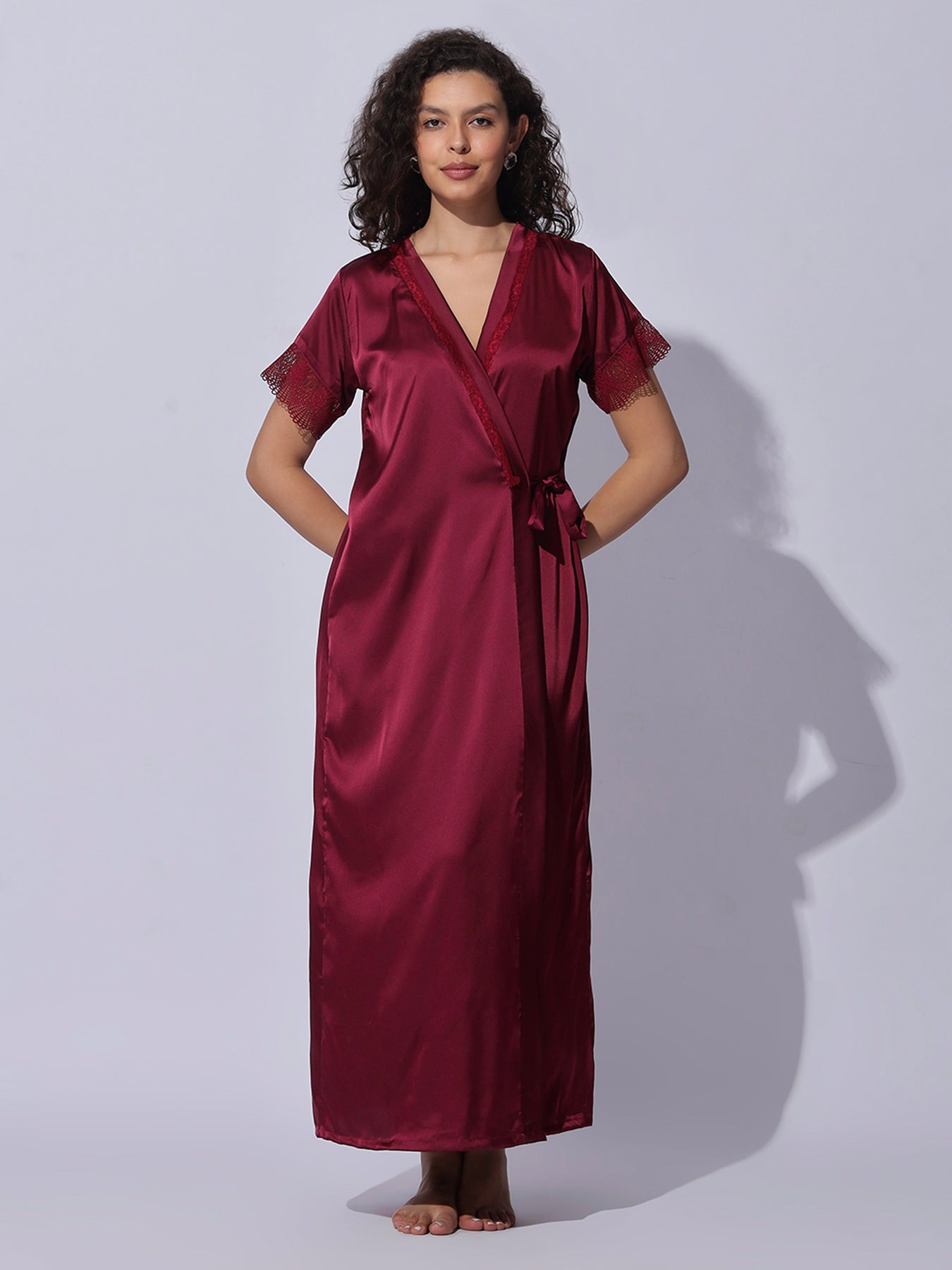 The Velvet Berry satin robe set stands out for its rich color, elegant lacework, and thoughtfully designed fit. It’s a perfect choice for women looking for a designer night dress set that feels luxurious, looks sophisticated, and lasts wear after wear.
