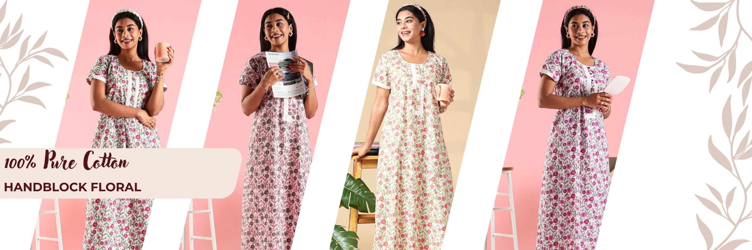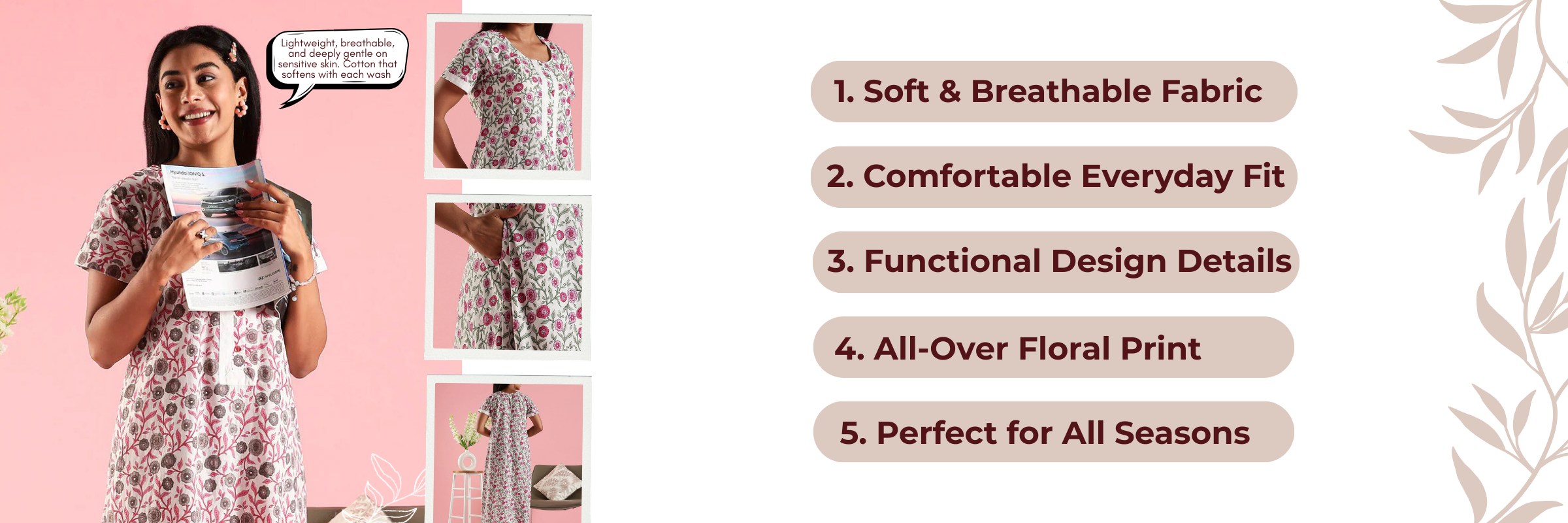 A-Line Cotton Nighty for Women with Soft Floral Pattern