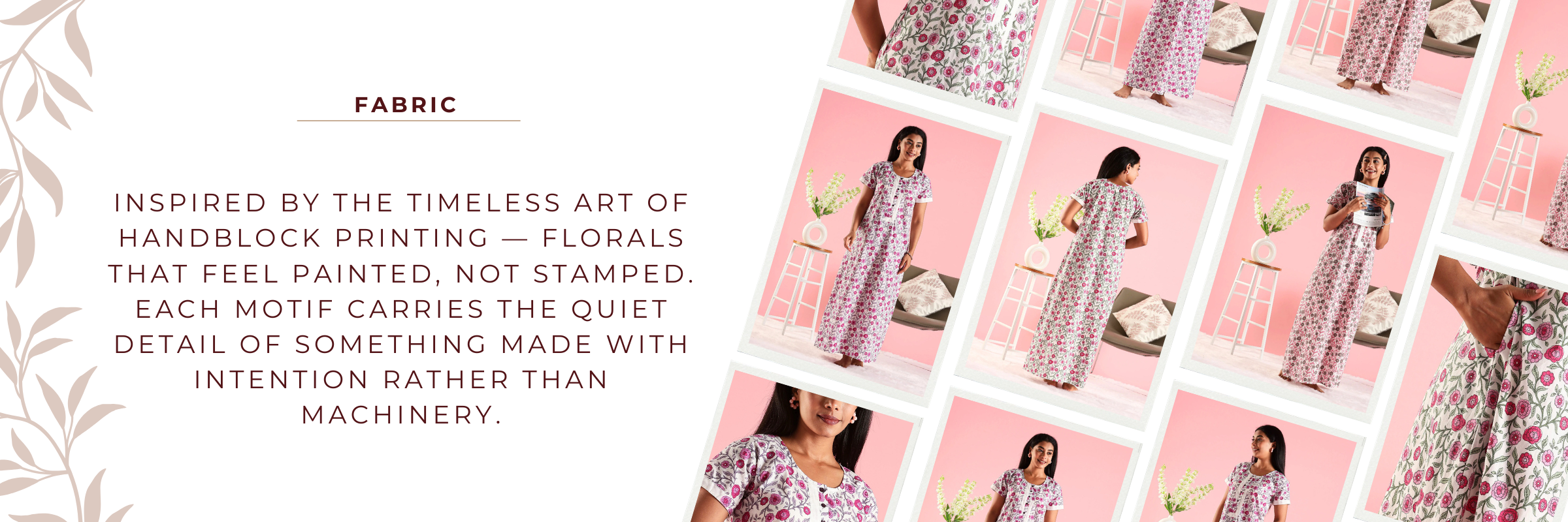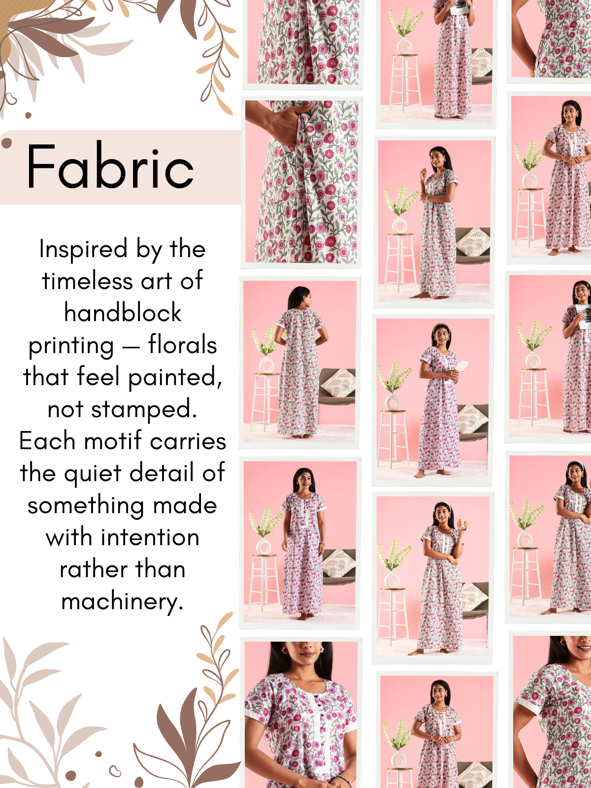 All-Over Floral Print: Subtle and timeless, inspired by handblock patterns