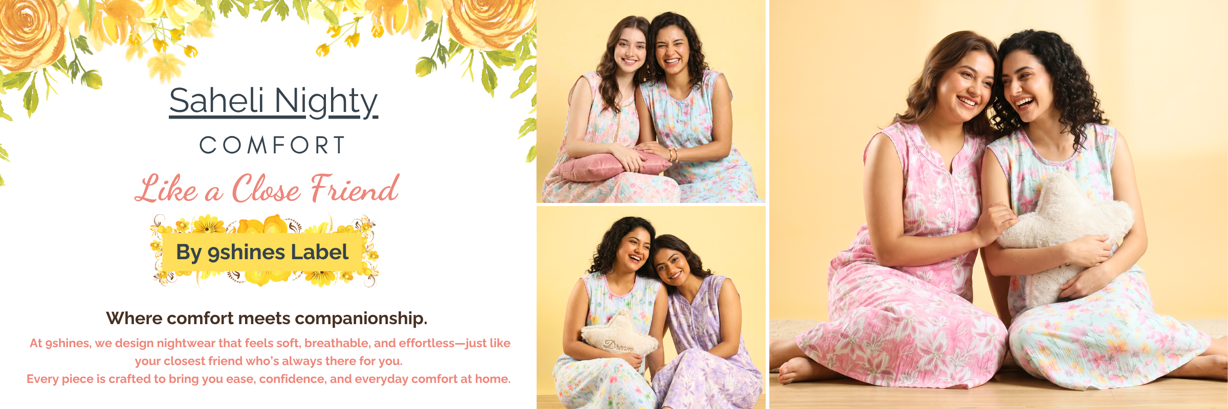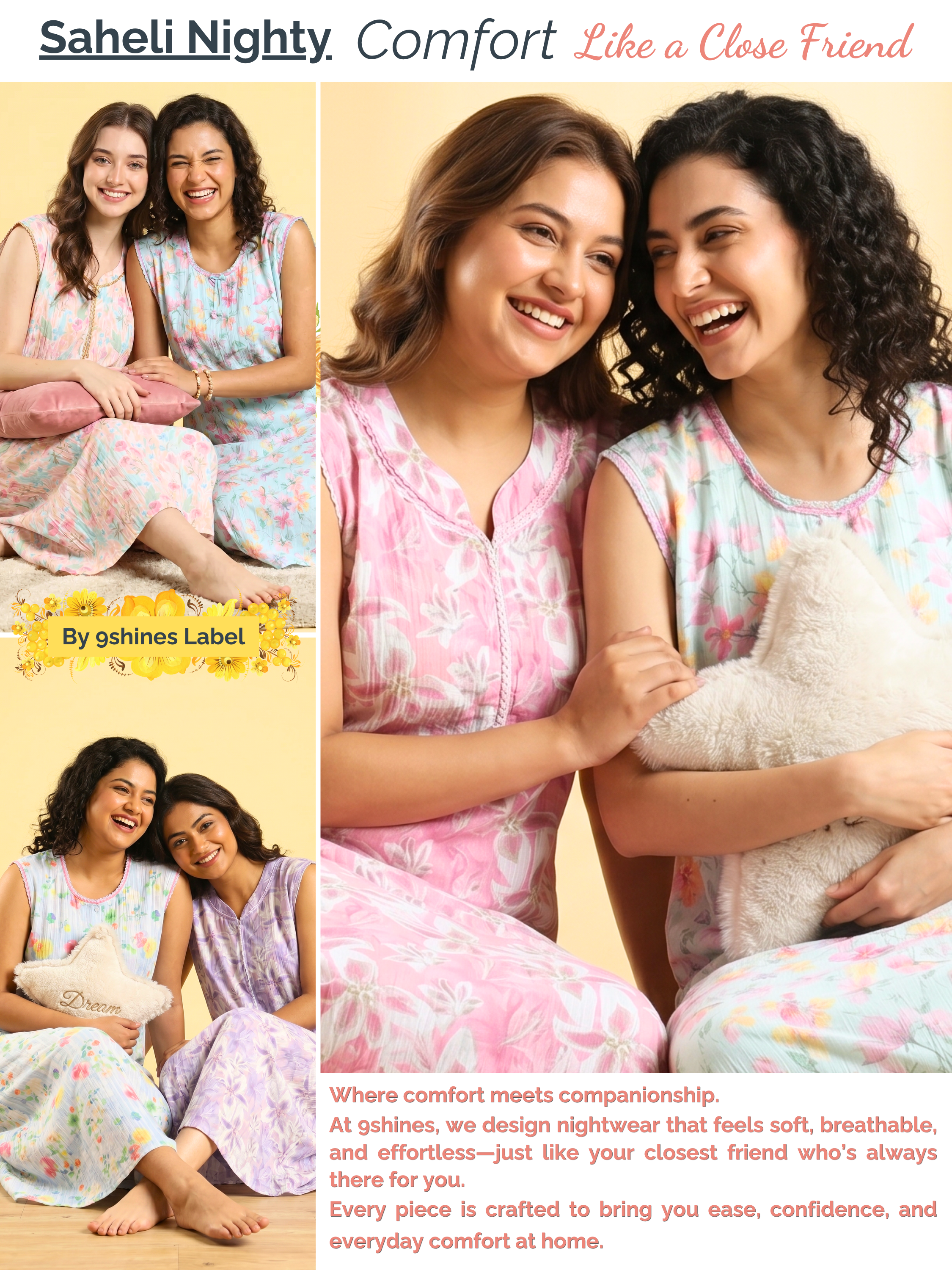 The Saheli Collection by 9shines Label is designed for women who value effortless comfort with a touch of everyday elegance. Inspired by the warmth of friendship, each piece feels soft, reliable, and easy—just like a true saheli.