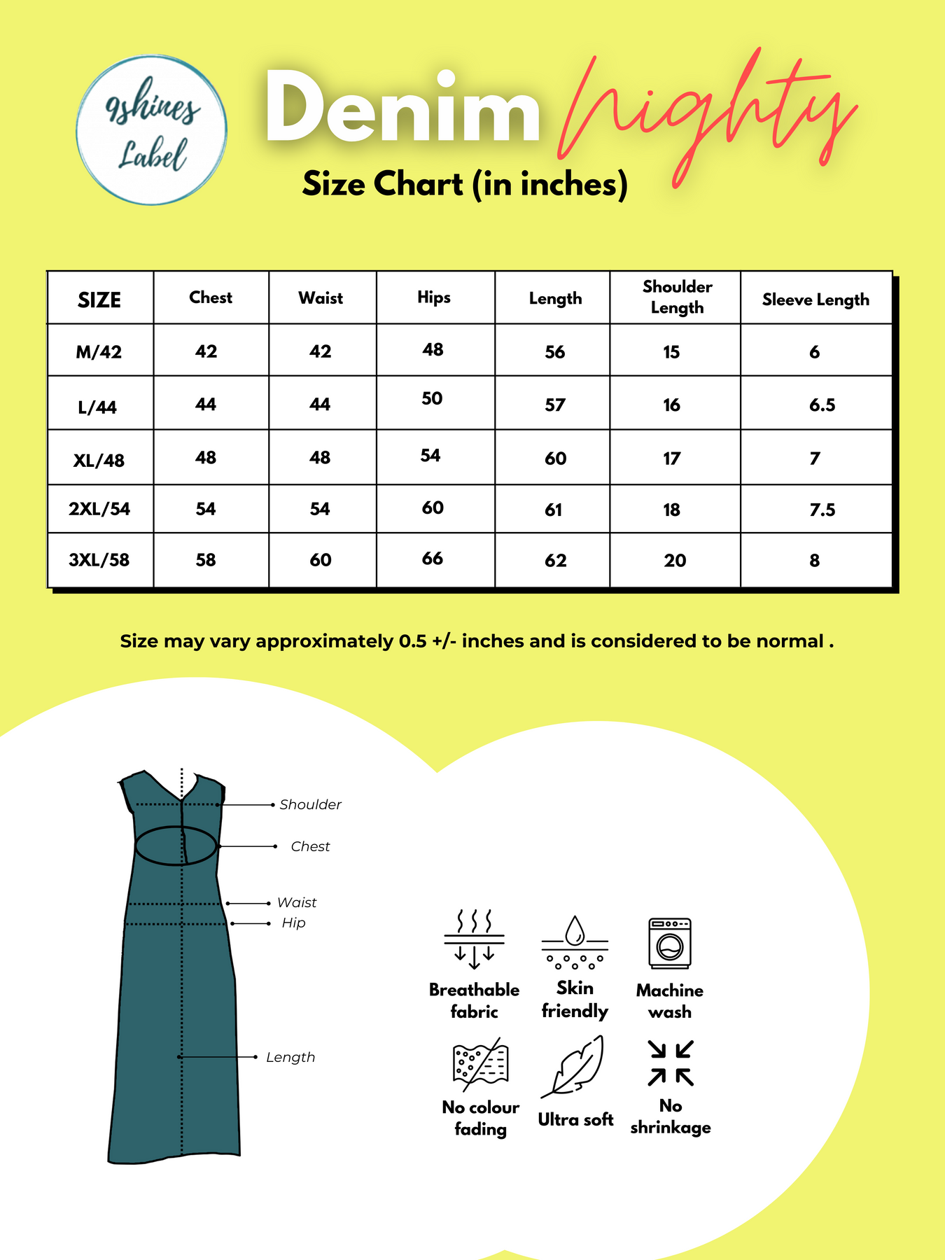 Shop the Soft Cotton Denim Embroidered Nighty from 9shines Label and enjoy effortless elegance every day.