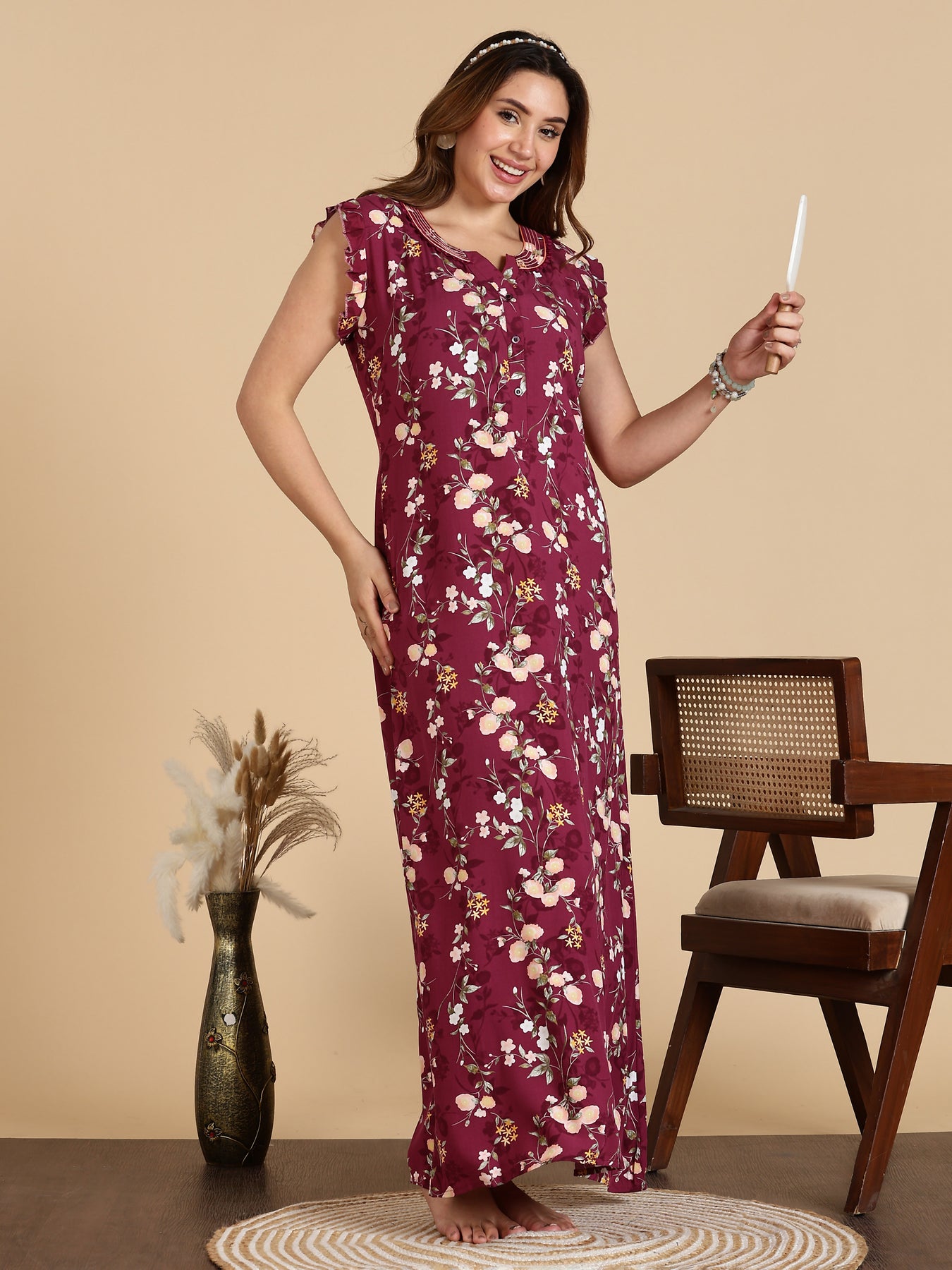 ✔ Full-Length Maxi Nighty – Ideal as a long maxi night gown nightdress