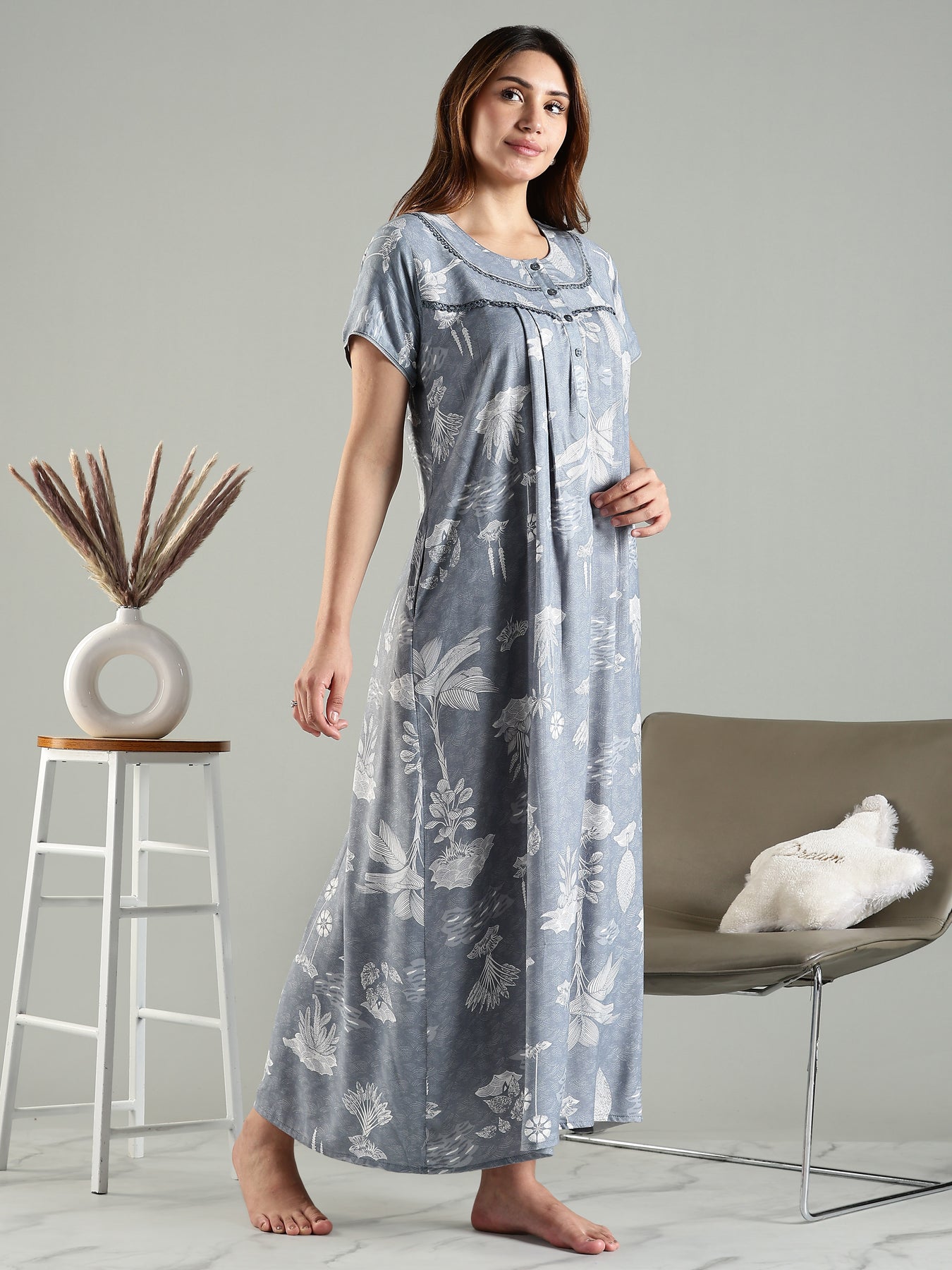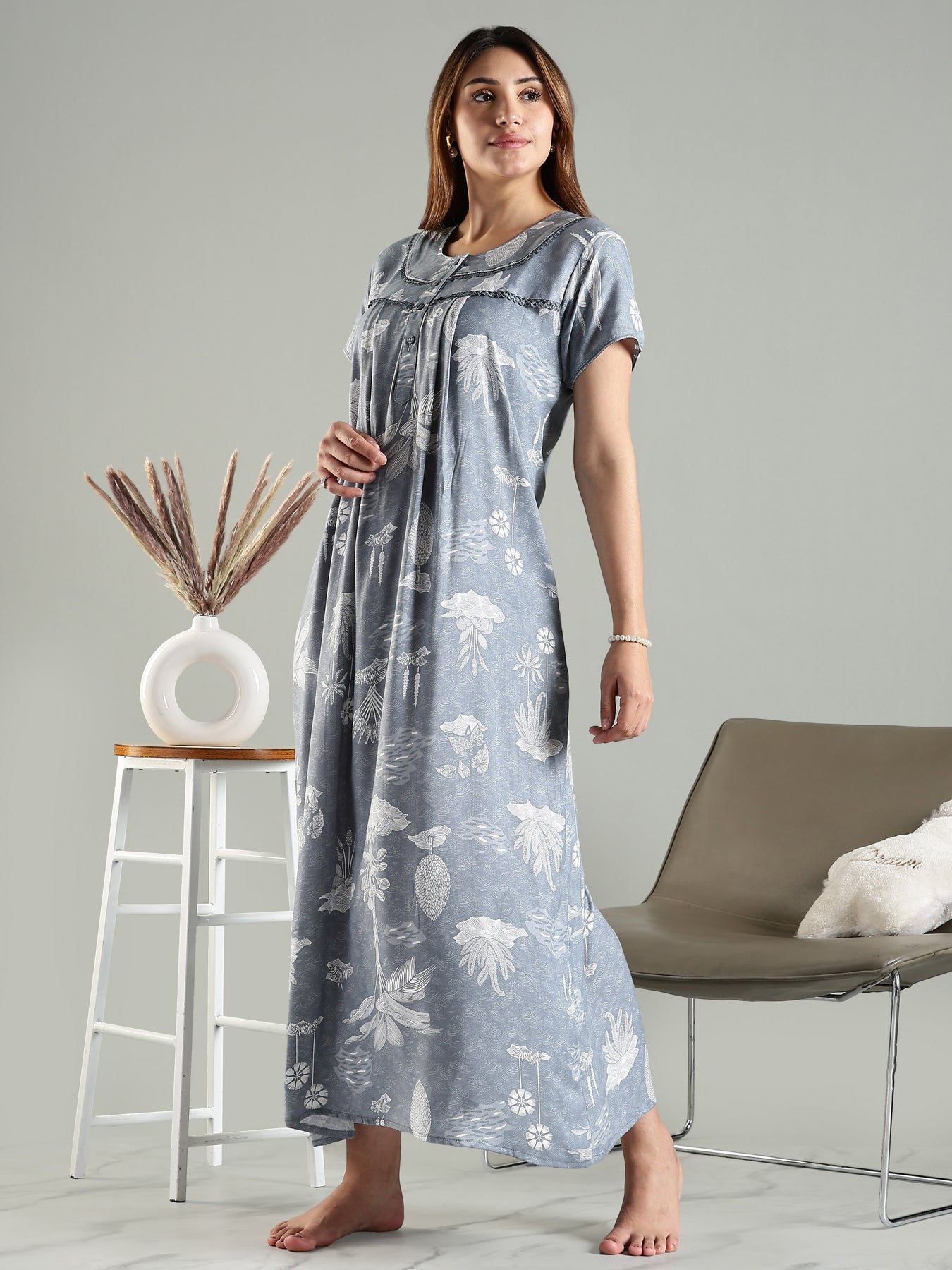 Alpine Pleated Floral Nighty – Maximum Comfort in Every Step