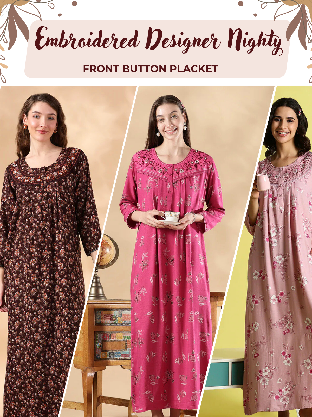 Floral Alpine Designer Nighty for Elegant Nightwear