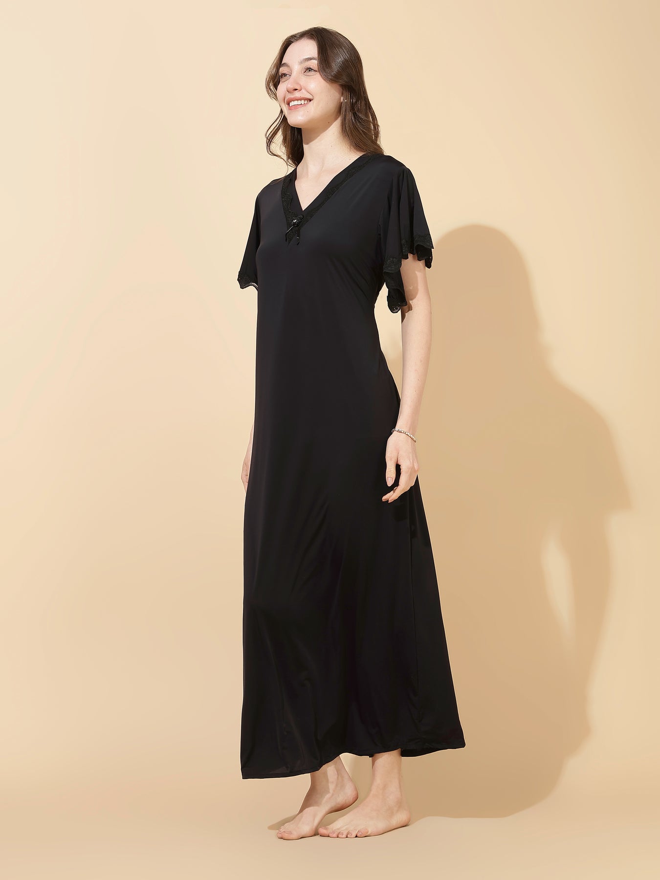 Timeless Solid Black Style: Classic noir color for a sophisticated nightwear look