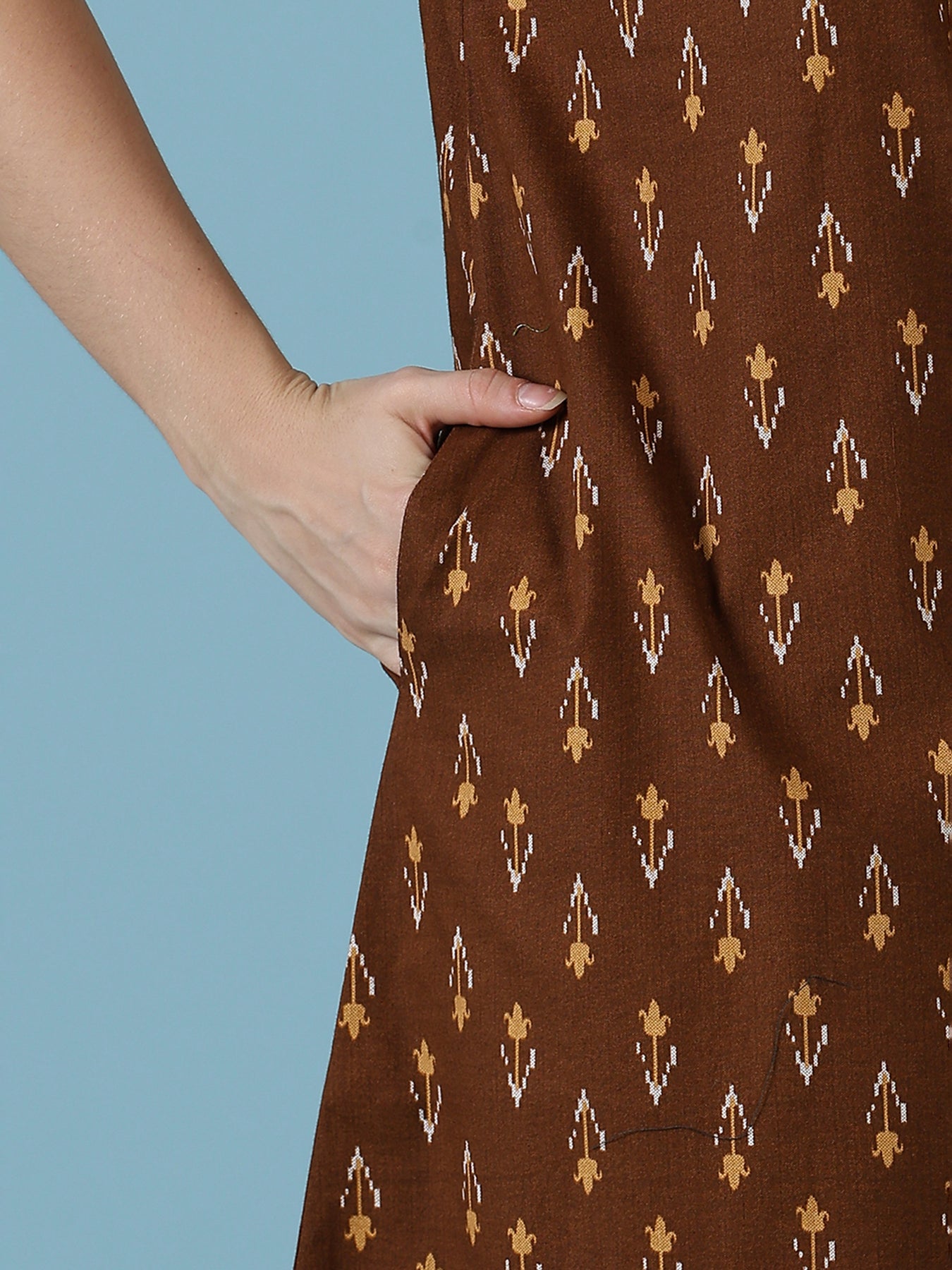Brown Ikat A Line Relaxed Fit Cotton Night Dress For Women