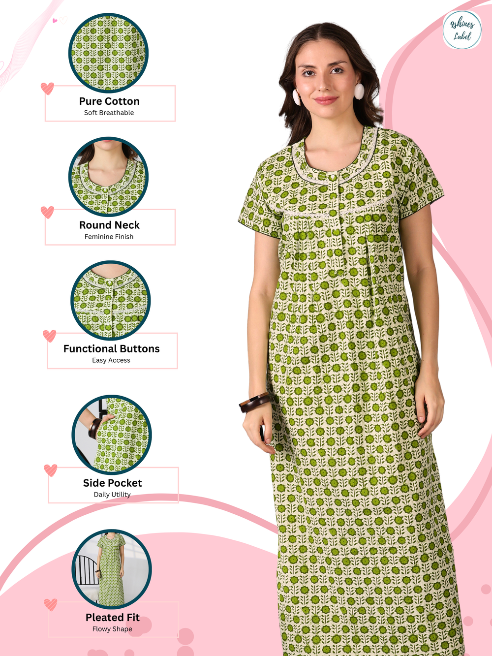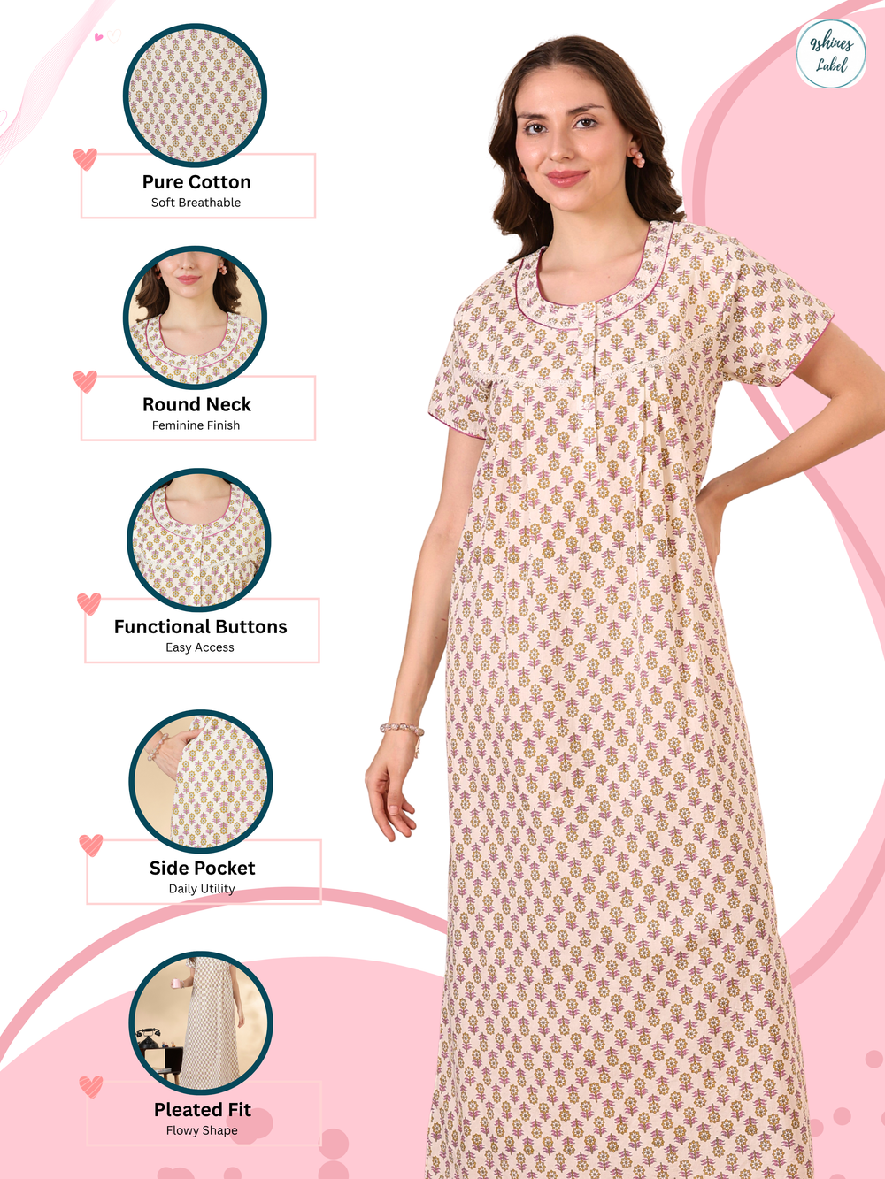 - All-Season Wear: The lightweight and wrinkle-free fabric makes this nighty ideal for summer and all-season use.