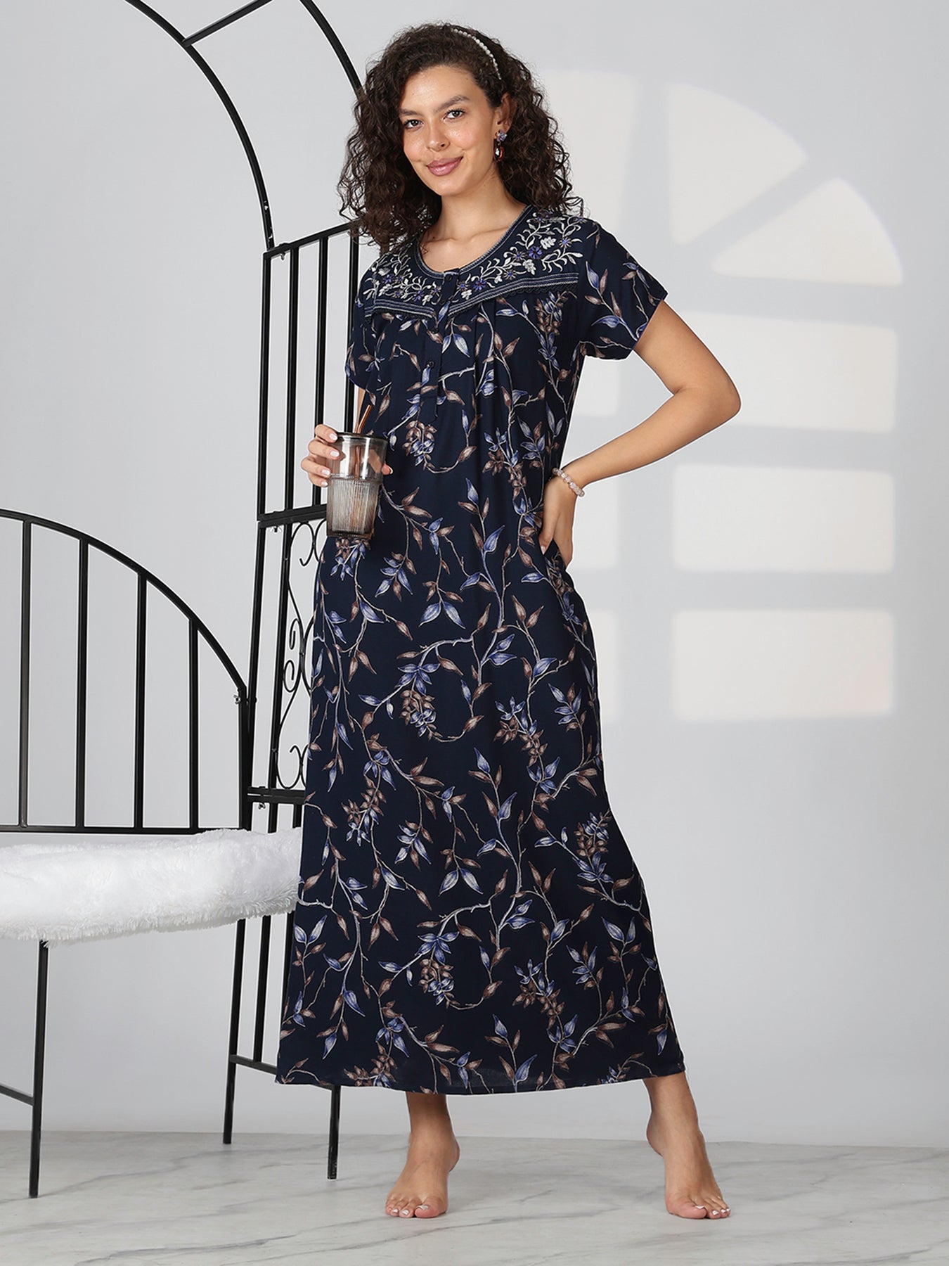 Shop this pleated floral night dress for women and redefine your everyday nightwear comfort.