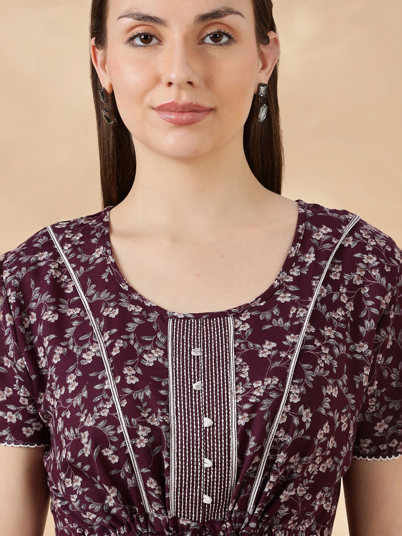 Wine Flora Frock Style Alpine Nighty for Cozy Luxe Vibes